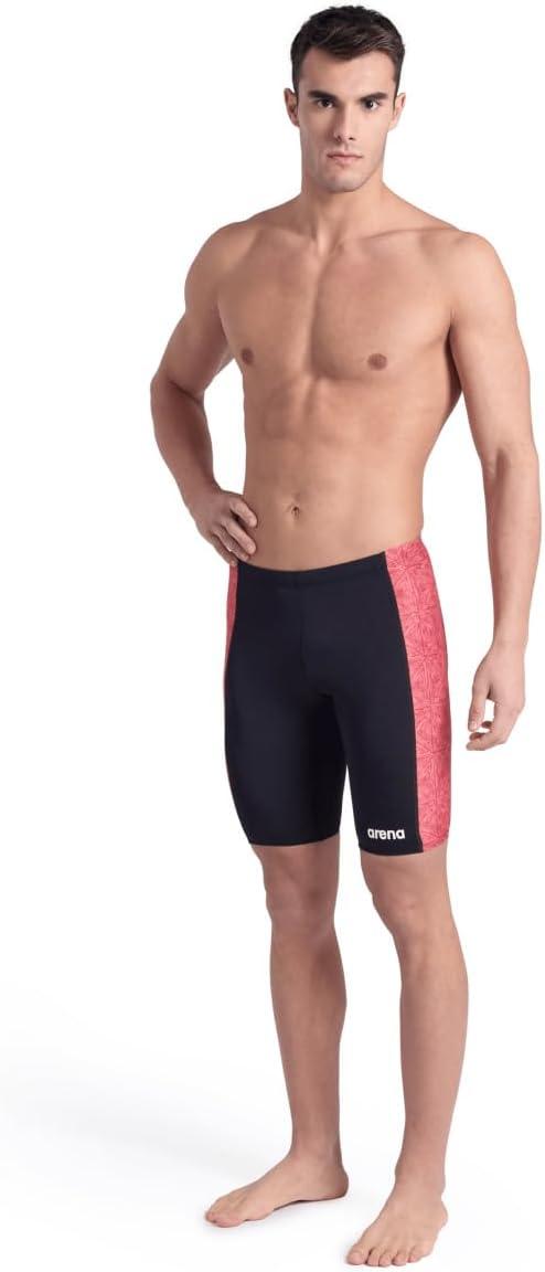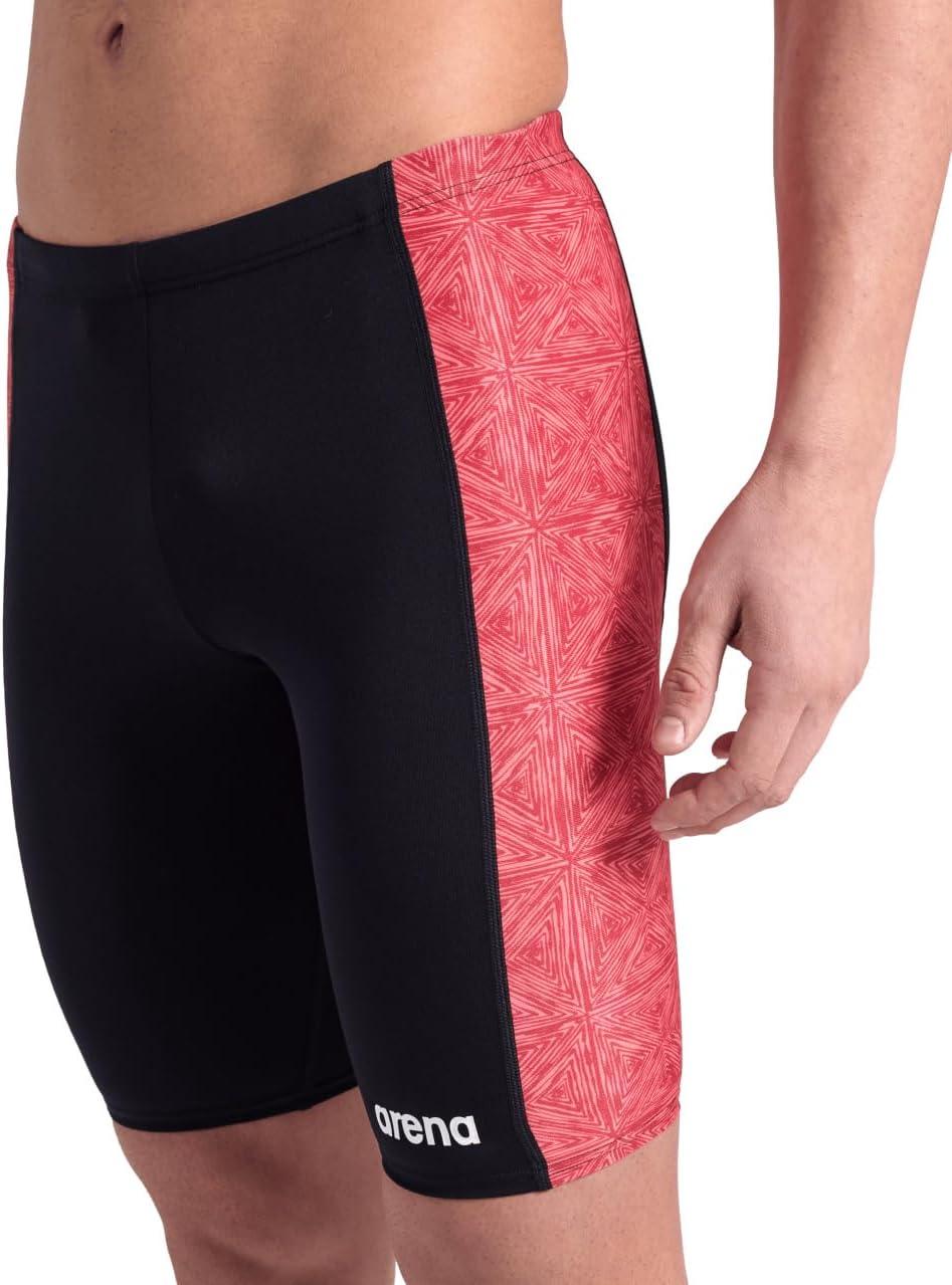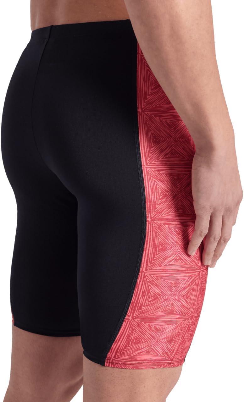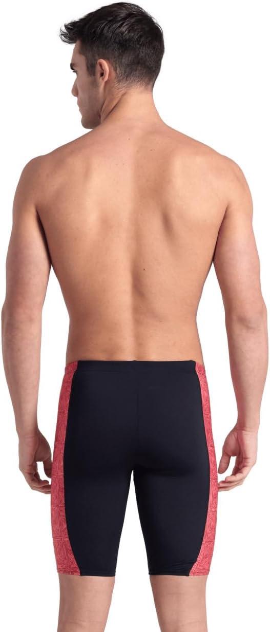 ARENA Performance Men’s Abstract Tiles Swim Jammer Athletic Practice Knee-Length Swimsuit Competitive Training Bathing Suit(Black/Team Red)