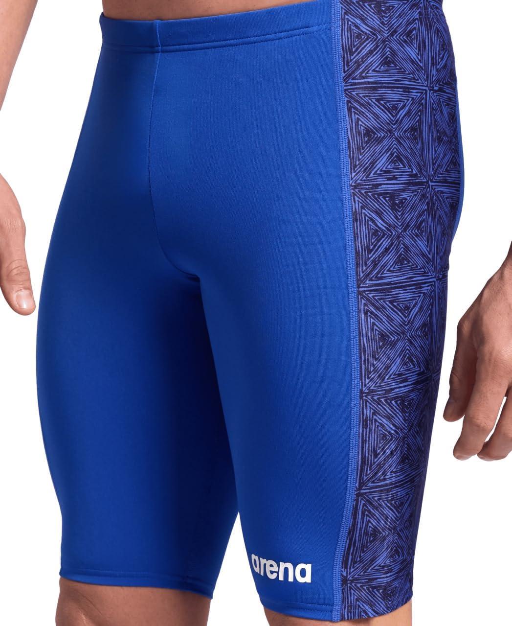 ARENA Performance Men’s Abstract Tiles Swim Jammer Athletic Practice Knee-Length Swimsuit Competitive Training Bathing Suit(Royal/Team Royal)