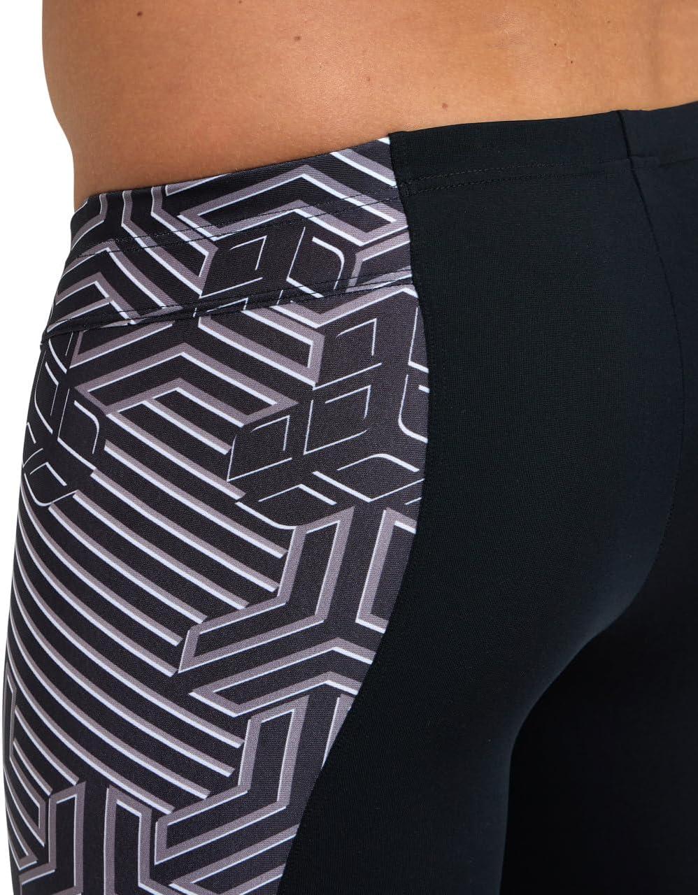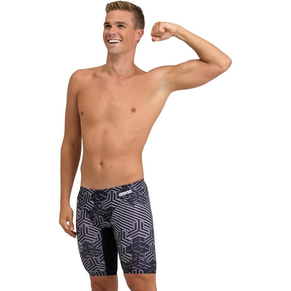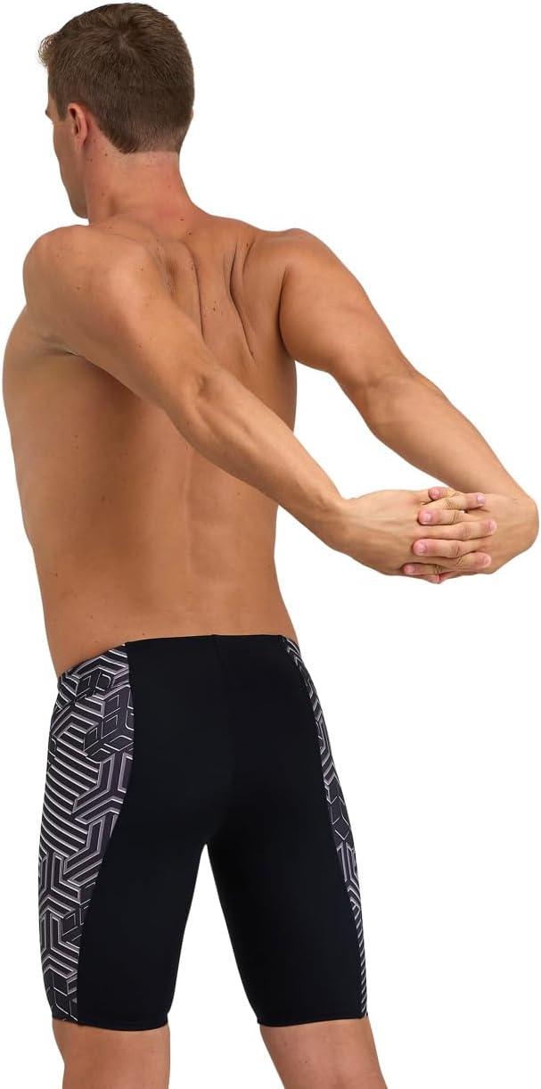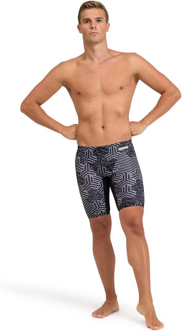 Arena Performance Men’s Kikko Pro Swim Jammer MaxLife Athletic Practice Knee-Length Swimsuit Short(Black/Black Multi)