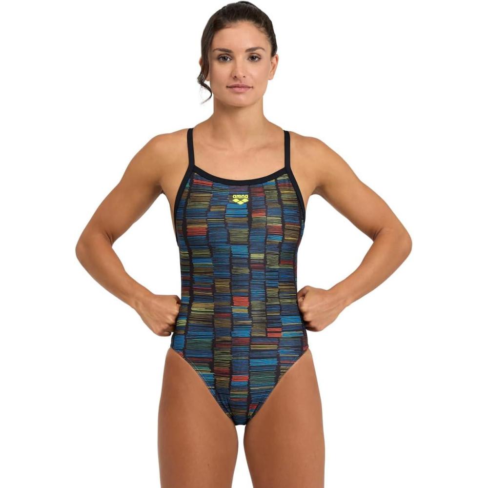 Arena Performance Slow Motion Women’s Swimsuit X Cross Back One Piece MaxLife Training Suit(Black/Turquoise Multi)