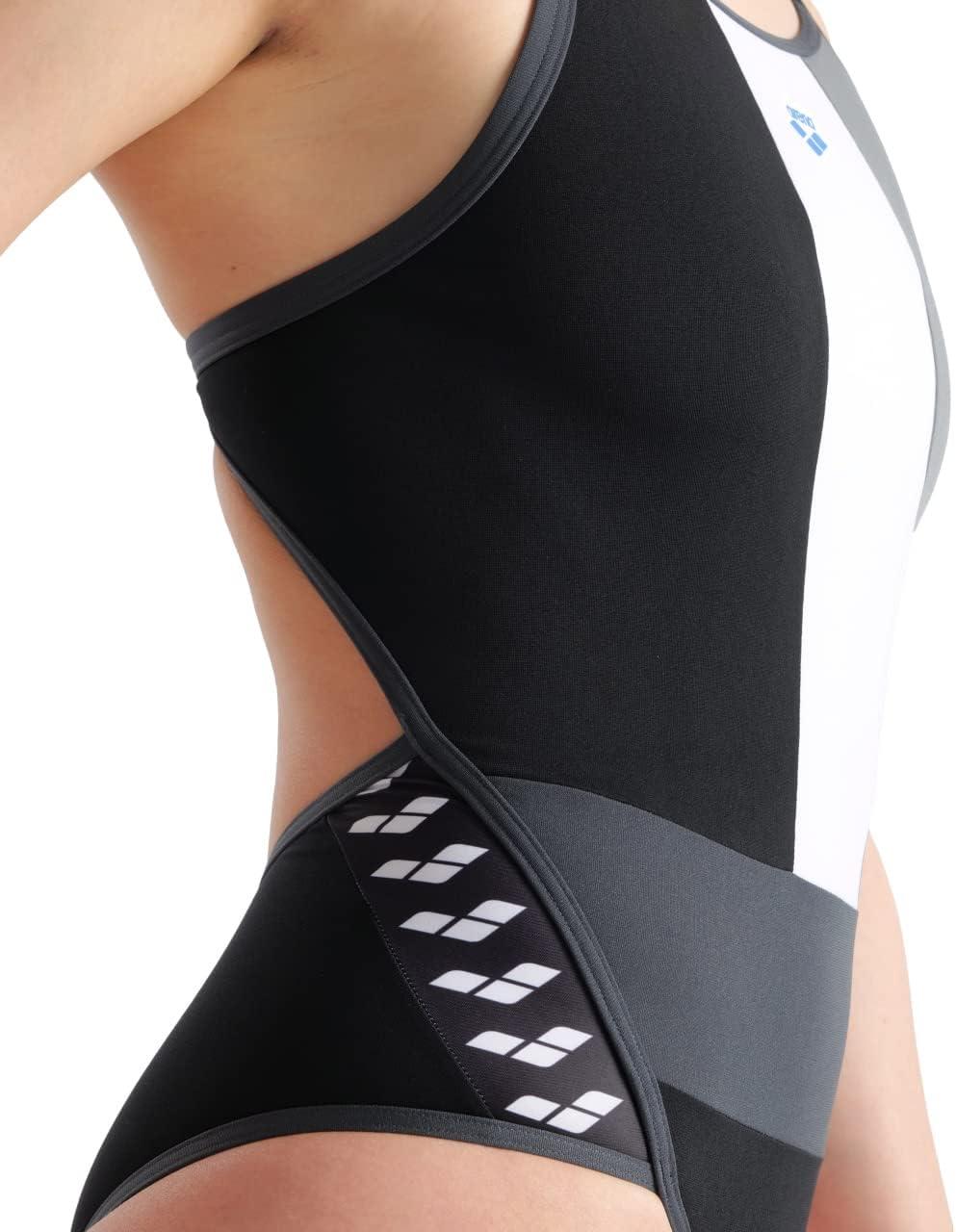 ARENA Performance Women’s Icons Panel Swimsuit Super Fly Back One Piece Training Suit(Black/Asphalt/Ardesia)