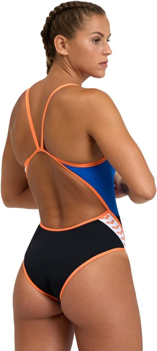 ARENA Performance Women’s Icons Panel Swimsuit Super Fly Back One Piece Training Suit(Black/White/Nespola)