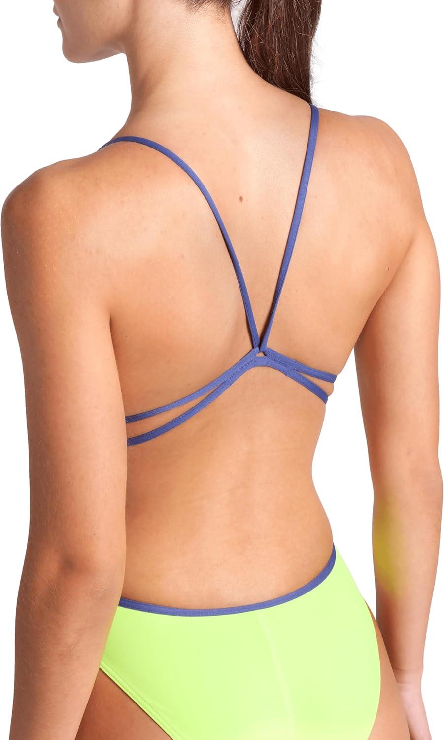 ARENA Performance Women’s Team Solid Lace Back Swimsuit One Piece Bathing Suit(Arctic Lime/Future Dusk)