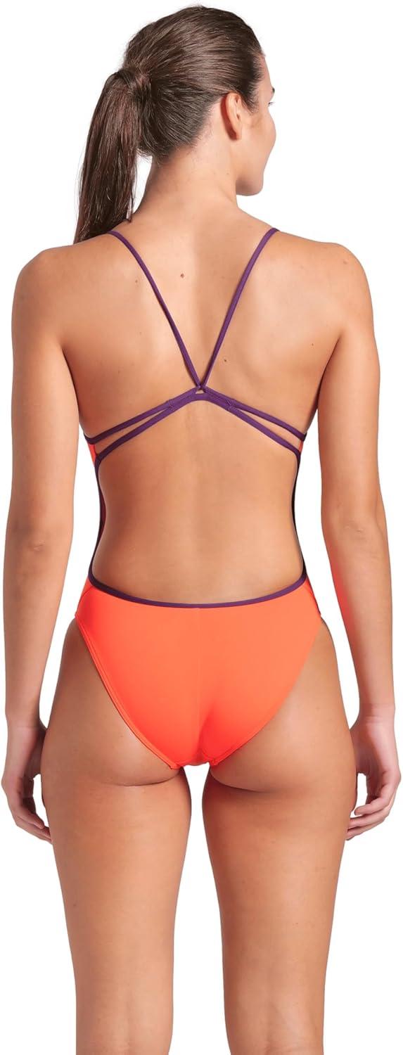 ARENA Performance Women’s Team Solid Lace Back Swimsuit One Piece Bathing Suit(Bright Coral/Plum)
