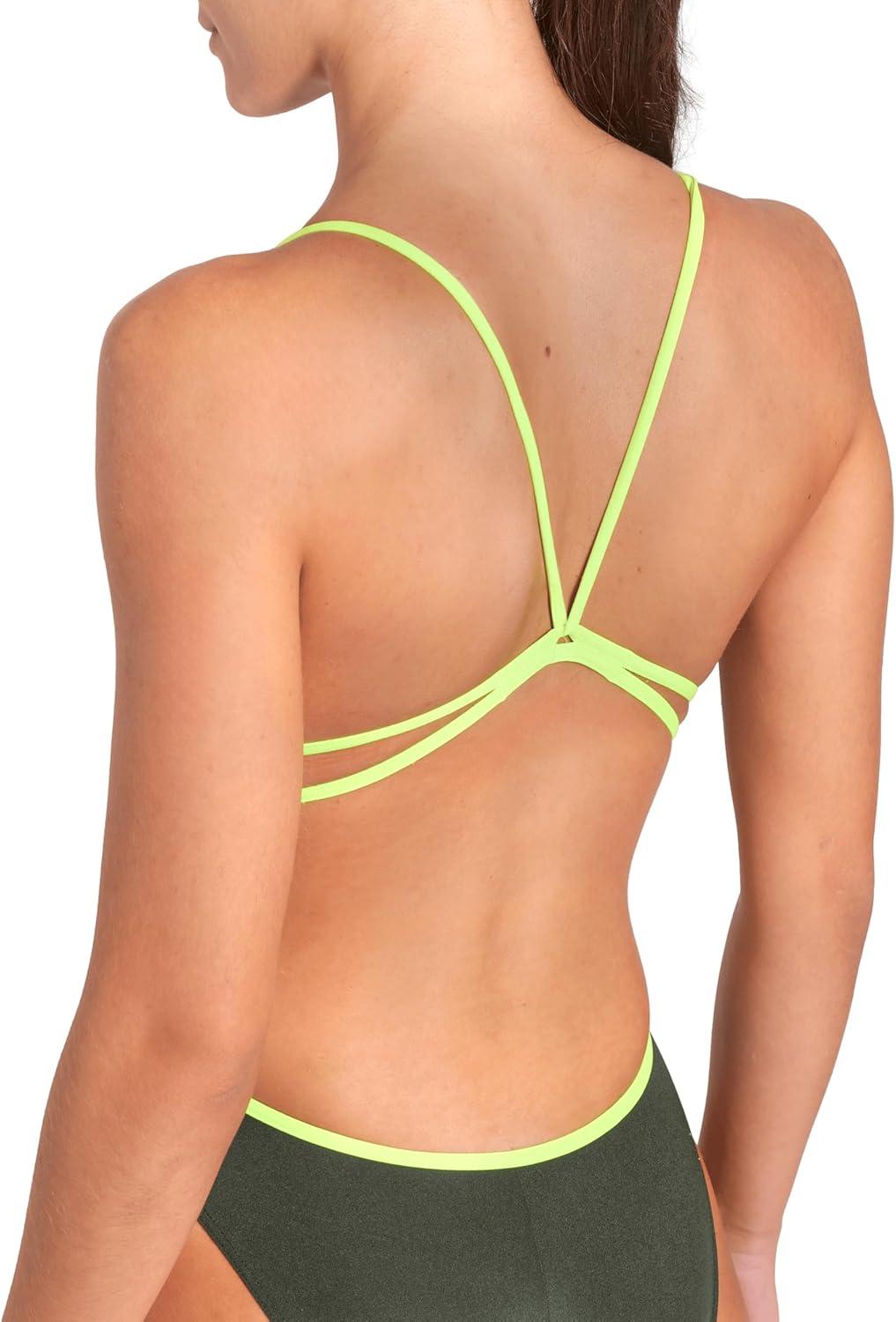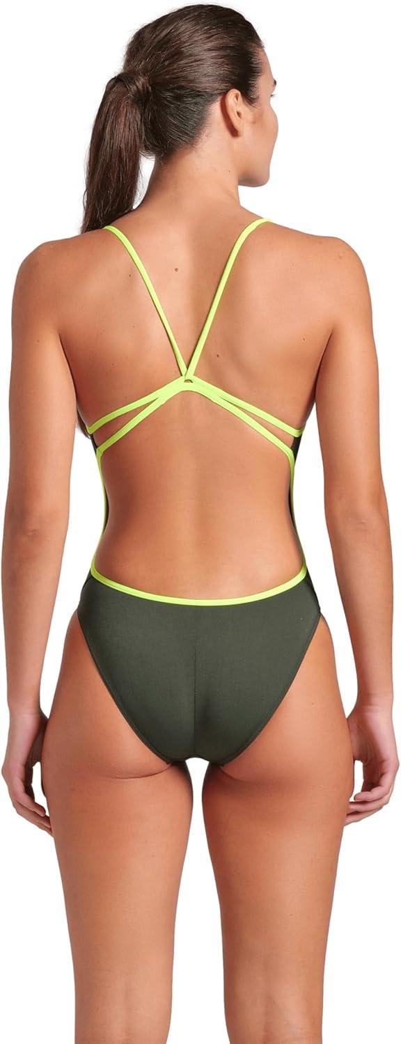 ARENA Performance Women’s Team Solid Lace Back Swimsuit One Piece Bathing Suit(Dark Sage/Arctic Lime)