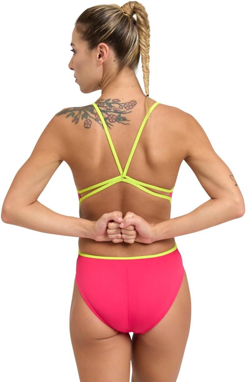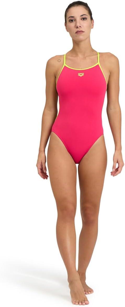 ARENA Performance Women’s Team Solid Lace Back Swimsuit One Piece Bathing Suit(Freak Rose/Soft Green)