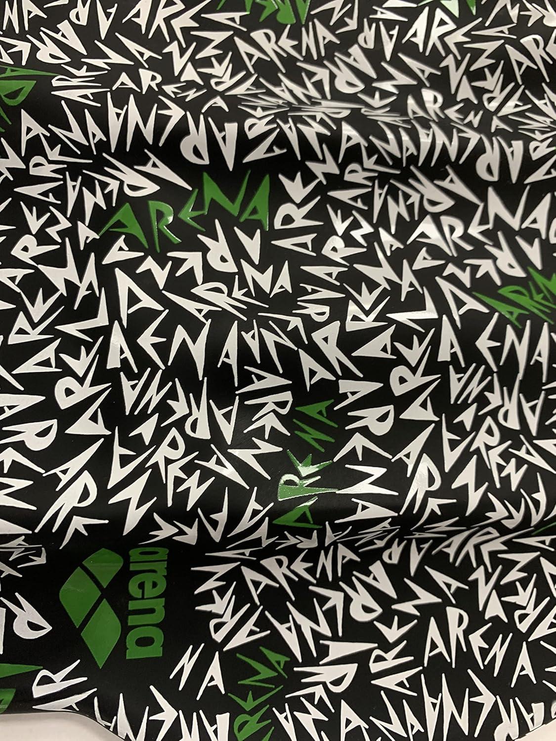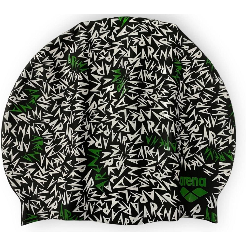 Arena Print Unisex Soft Silicone Swim Cap for Women and Men, Intensive Training Comfortable Non-Slip Long Hair Swimming Hat(Memphis Black / Green)
