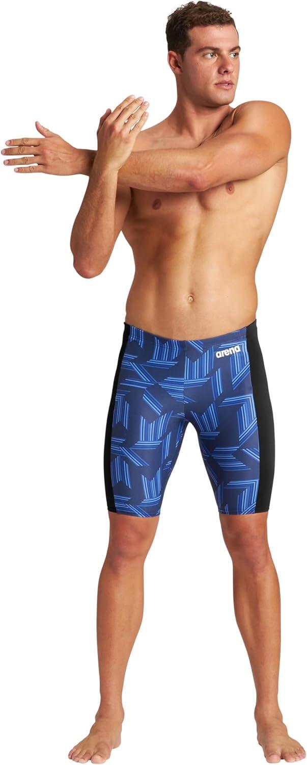 ARENA Puzzled Athletic Swim Jammers for Men Competitive Racing, Training, Quick Dry, Compression, Chlorine Resistant Swimsuit(Black/Navy Multi)