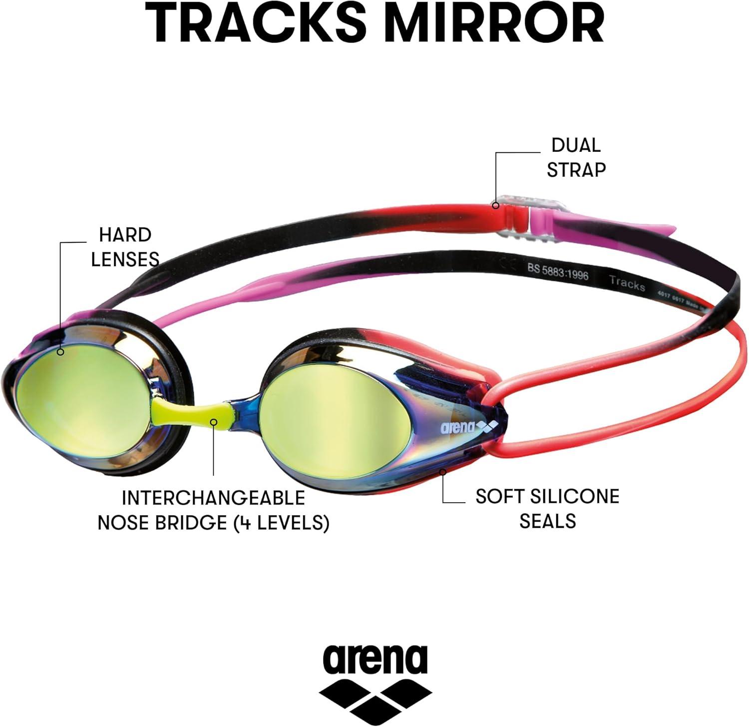 Arena Tracks Unisex Adult Essential Racing Swim Goggles Competitive Swimmers FINA-Approved Anti-Fog Mirror/Non-Mirror Lens(Purple / Purple / Red)