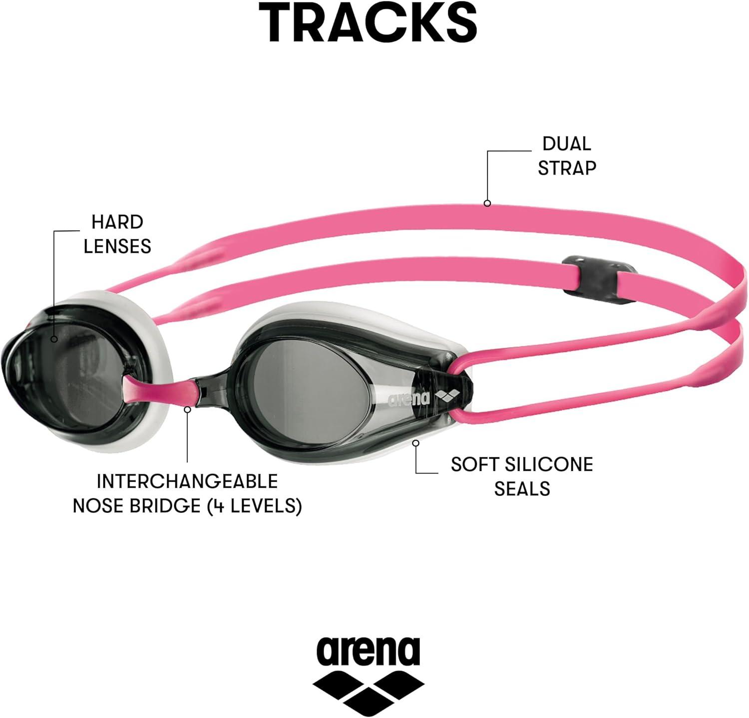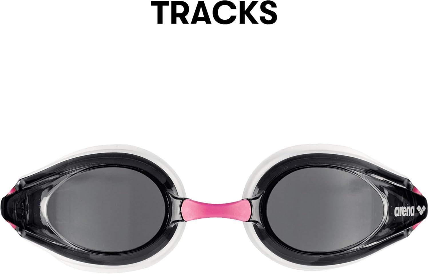 Arena Tracks Unisex Adult Essential Racing Swim Goggles Competitive Swimmers FINA-Approved Anti-Fog Mirror/Non-Mirror Lens(White / Smoke / Fuchsia)
