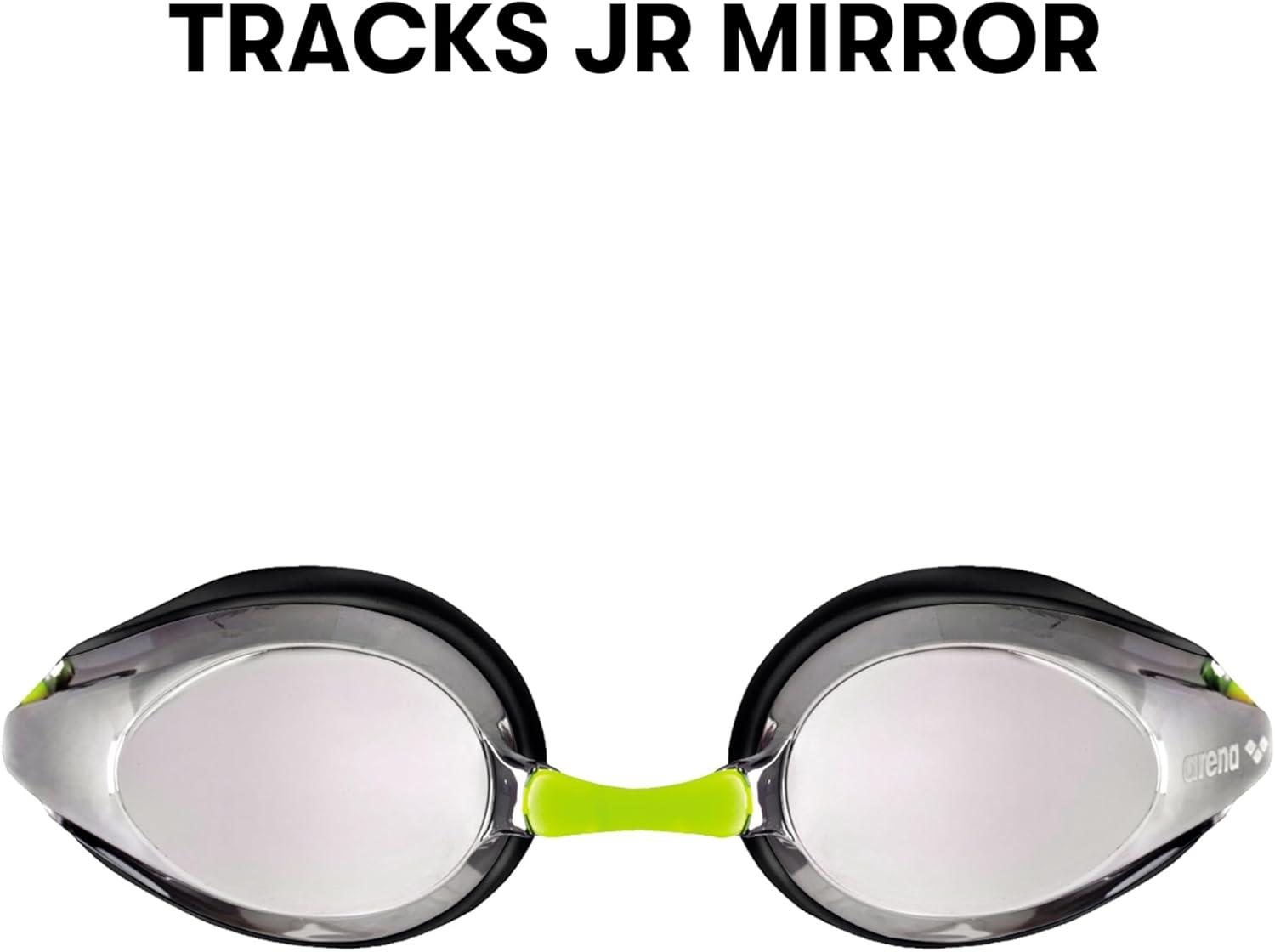 ARENA Tracks Unisex Junior Youth Essential Racing Swim Goggles Kids Swimmers Young Racers Anti-Fog Coated Mirror Lens, Violet/Fuchsia/Green(Silver/Black/Fluo Yellow)