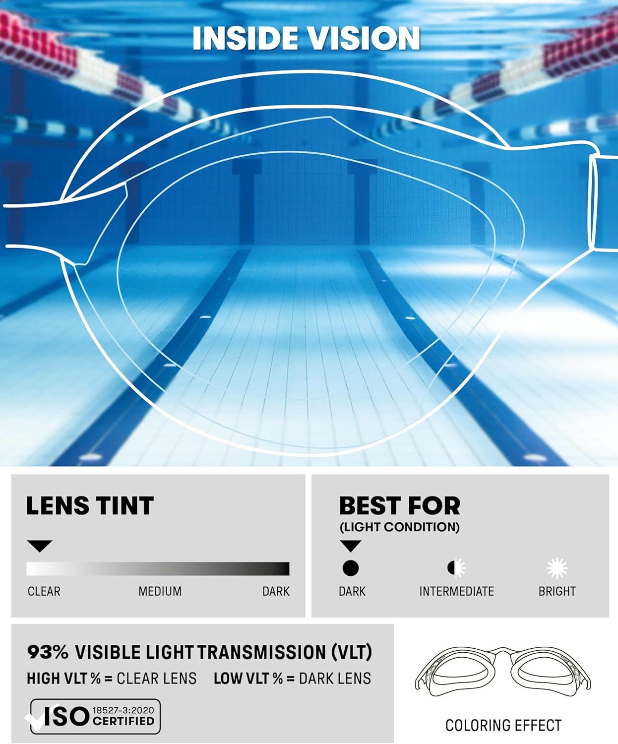Swipe Anti-Fog protection lasts 10 times longer and can be reactivated by swiping the lenses with your fingers while the goggles are in the water