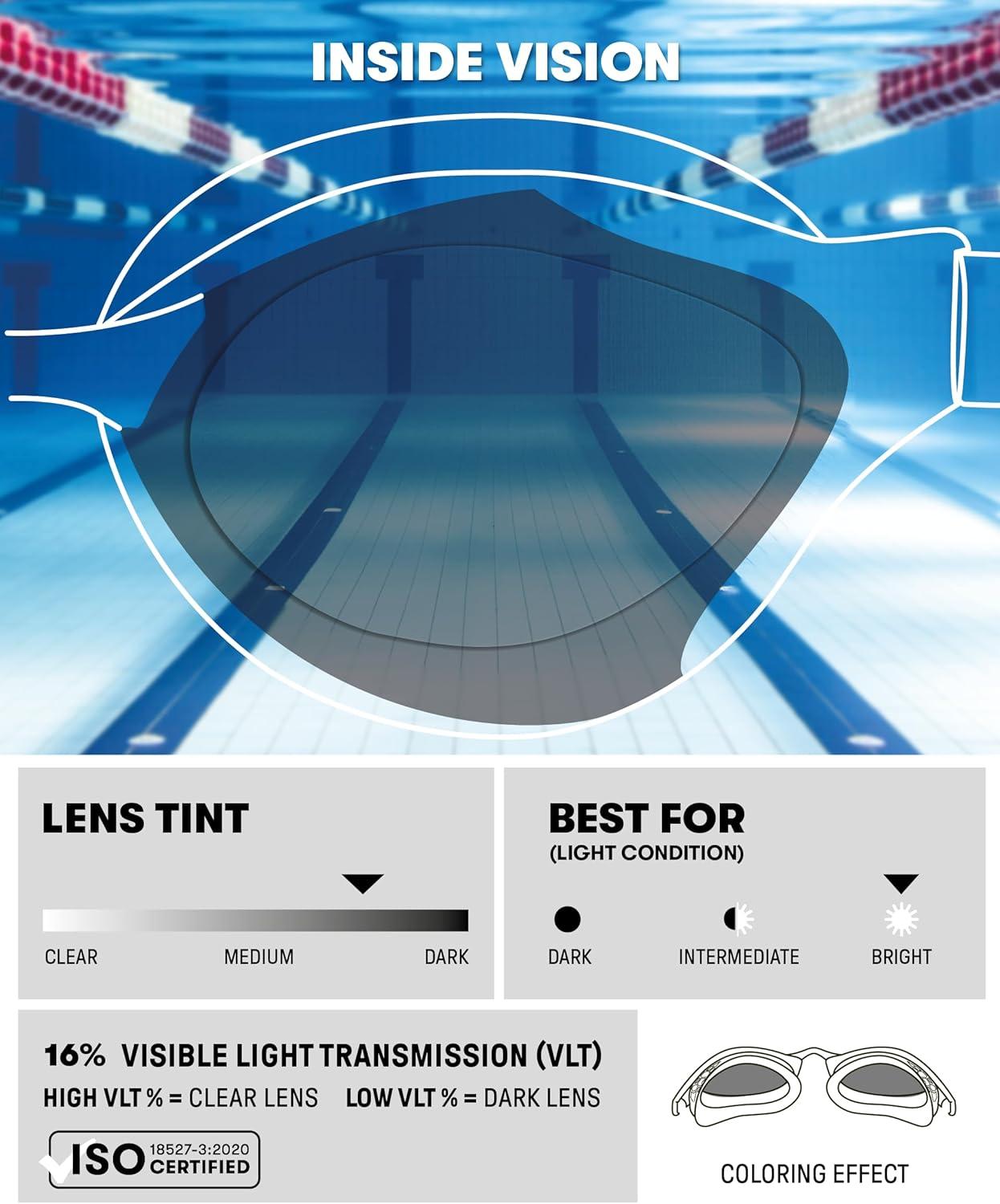 Swipe Anti-Fog protection lasts 10 times longer and can be reactivated by swiping the lenses with your fingers while the goggles are in the water