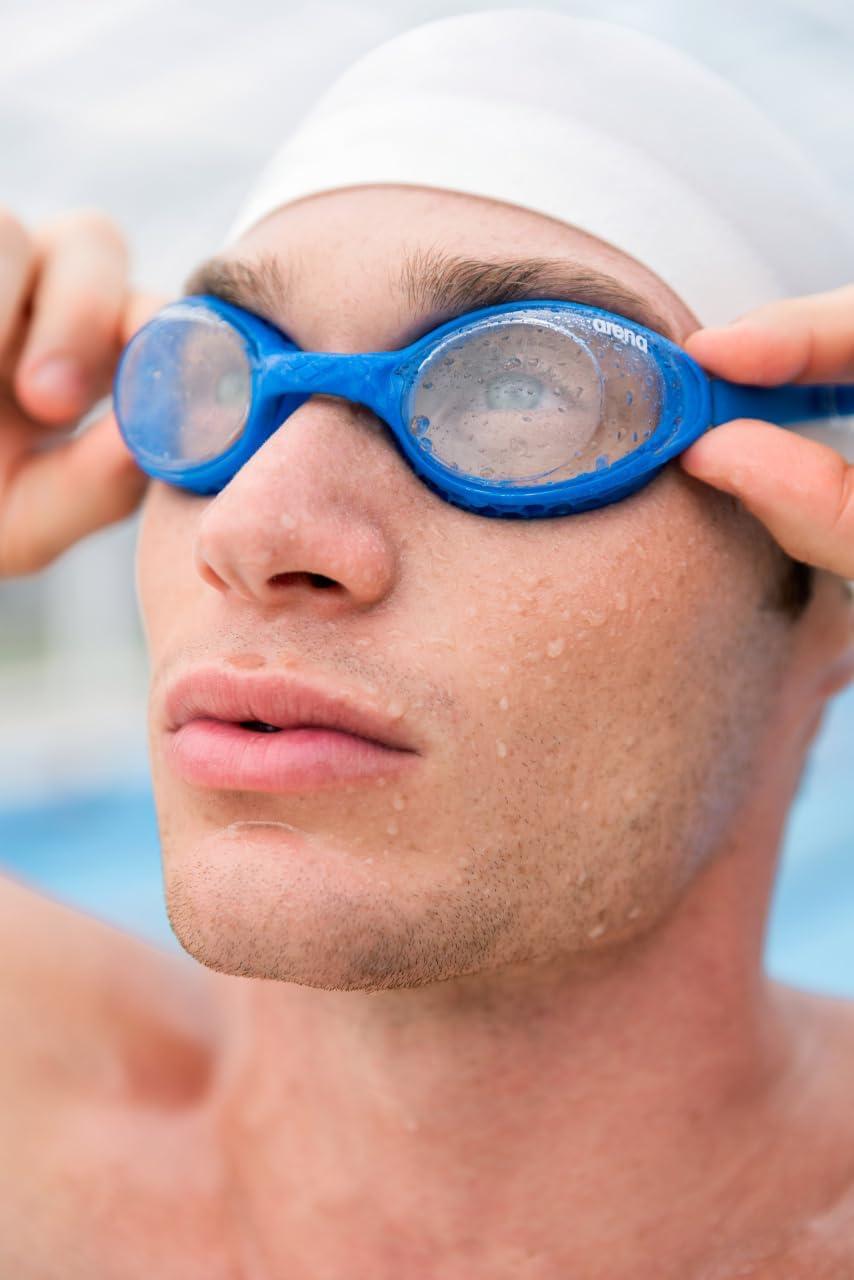 Arena Unisex Adult Air-Soft Anti-Fog Swim Goggles Men and Women Light Comfortable Design Cushioned Seals Non Mirror Lens(Blue / Clear)