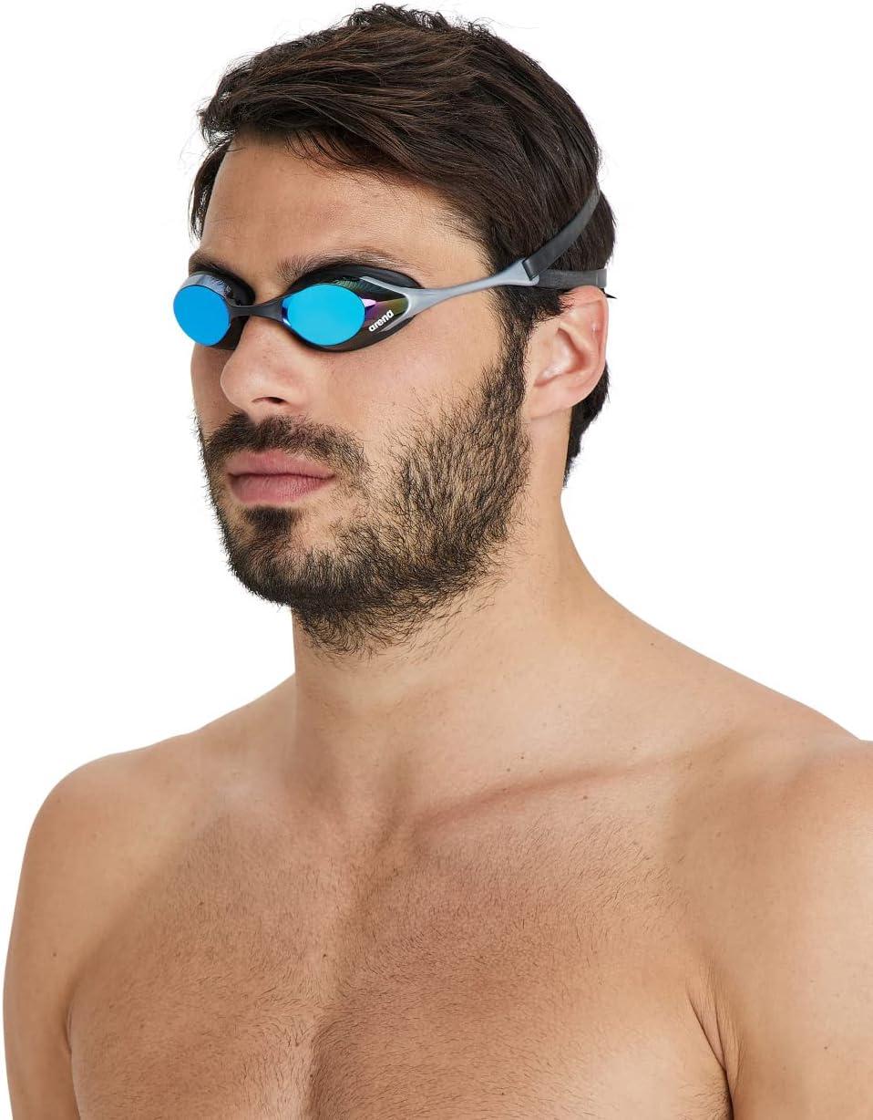 Arena Unisex Adult Cobra Swipe Anti-Fog Racing Swim Goggles Polycarbonate Mirror/Non-Mirror Lens Hydrodynamic Design(Blue/Silver)