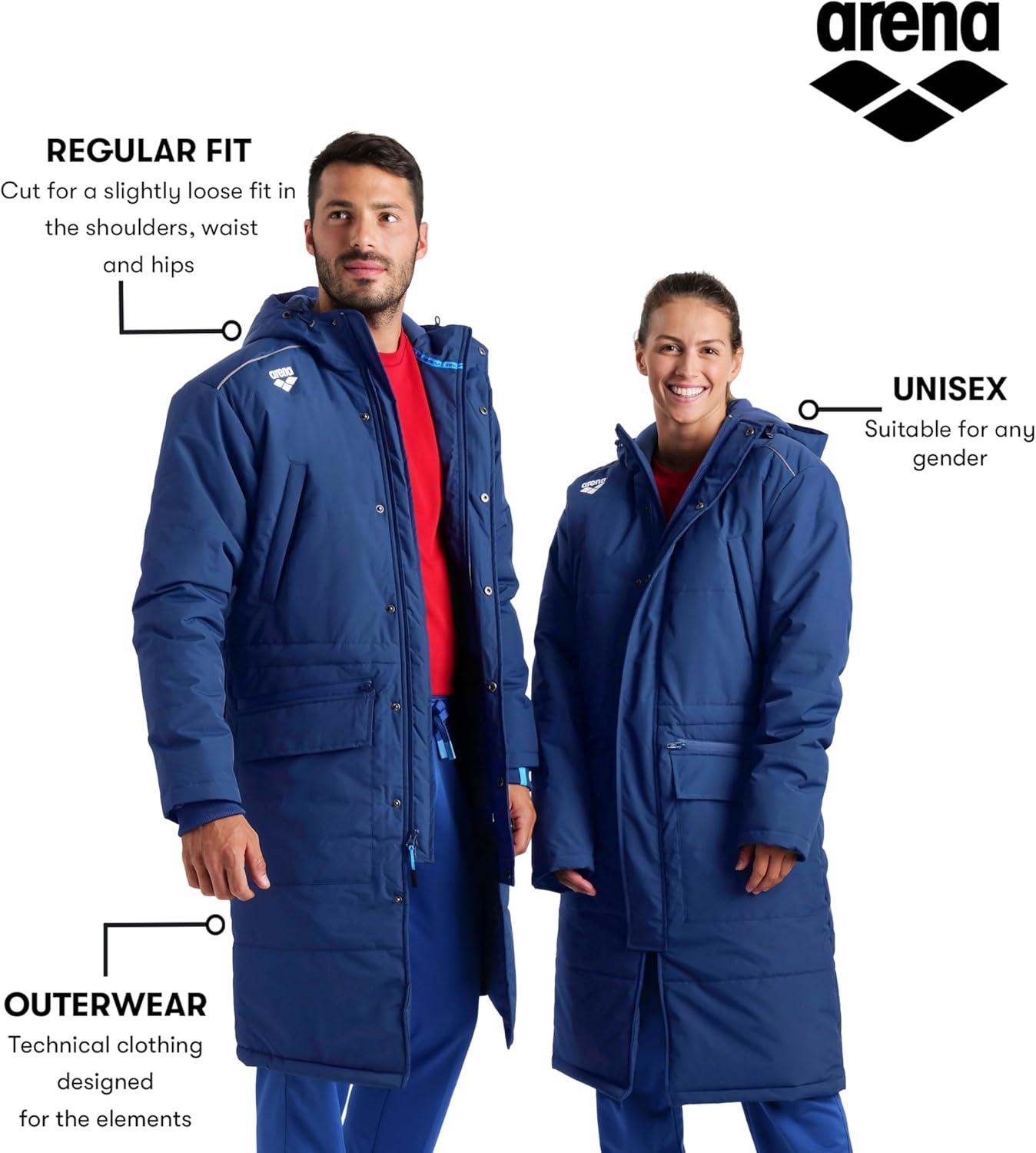 Arena Unisex Adult Team Swim Parka Solid Fleece Warm Winter Coat Waterproof Long Jacket for Women and Men Cold Weather Anorak(Royal)