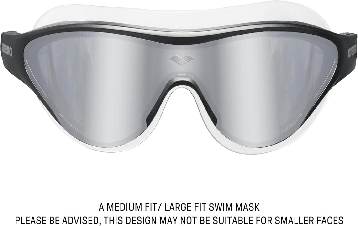 A medium fit / large fit swim mask, The One Mask goggle has mirrored lenses and soft seals that adapt to most faces; Please be advised, this design may not be suitable for smaller faces