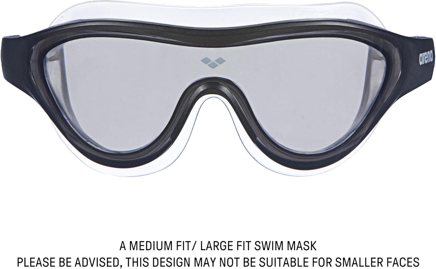A medium fit / large fit swim mask, The One Mask goggle has mirrored lenses and soft seals that adapt to most faces; Please be advised, this design may not be suitable for smaller faces
