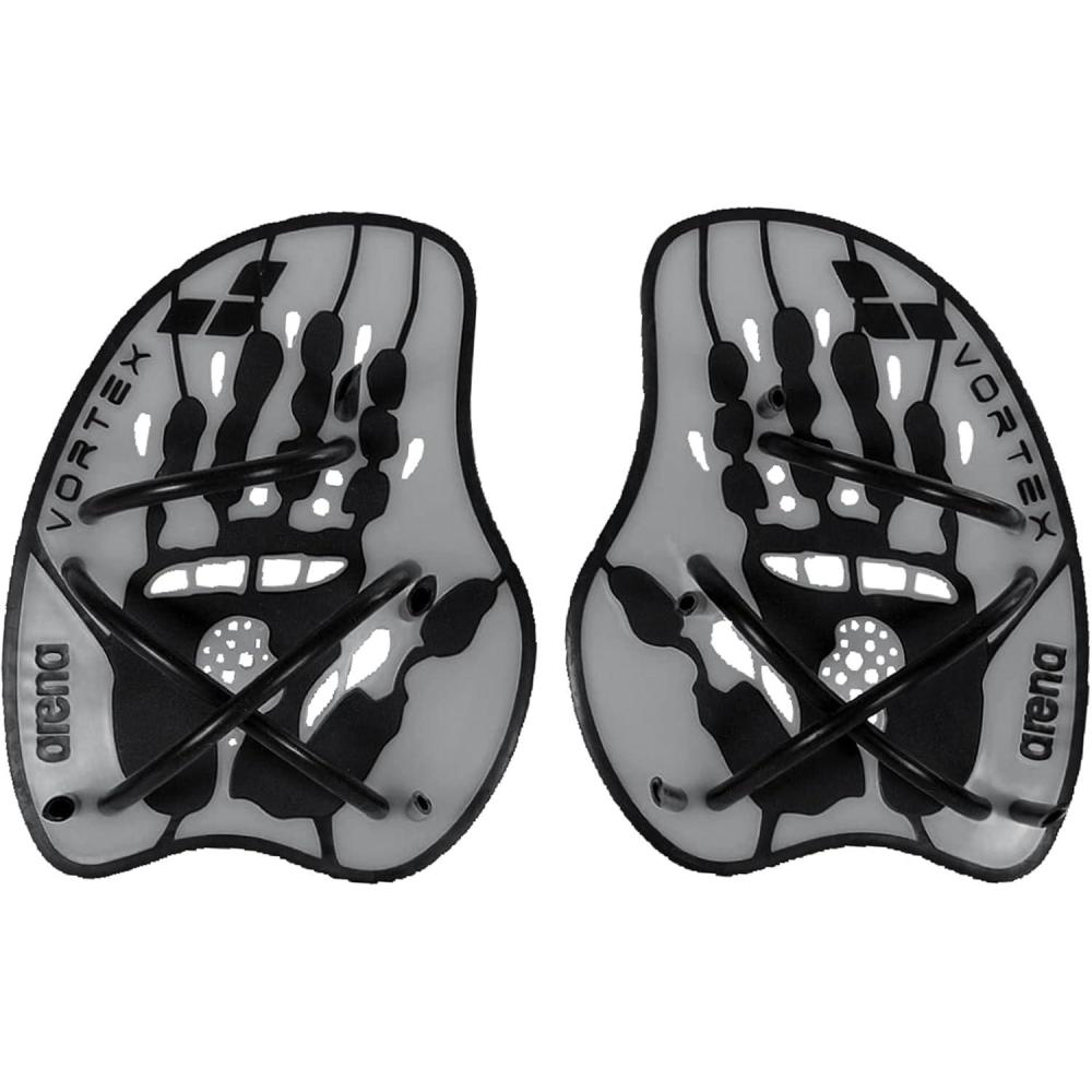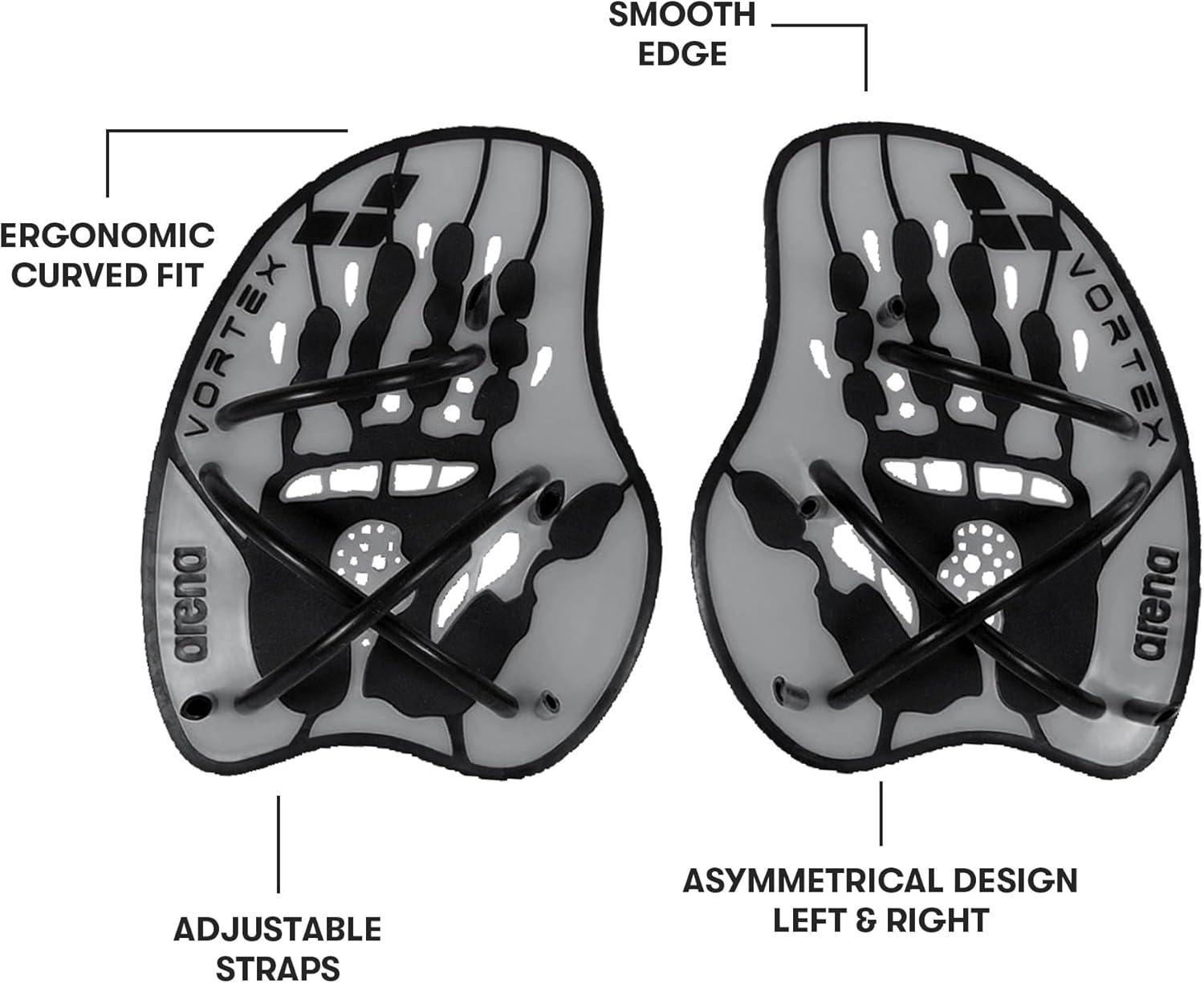 Arena Unisex Adult Vortex Evolution Swimming Hand Paddles for Women and Men Adjustable Straps Curved Design(Silver/Black)