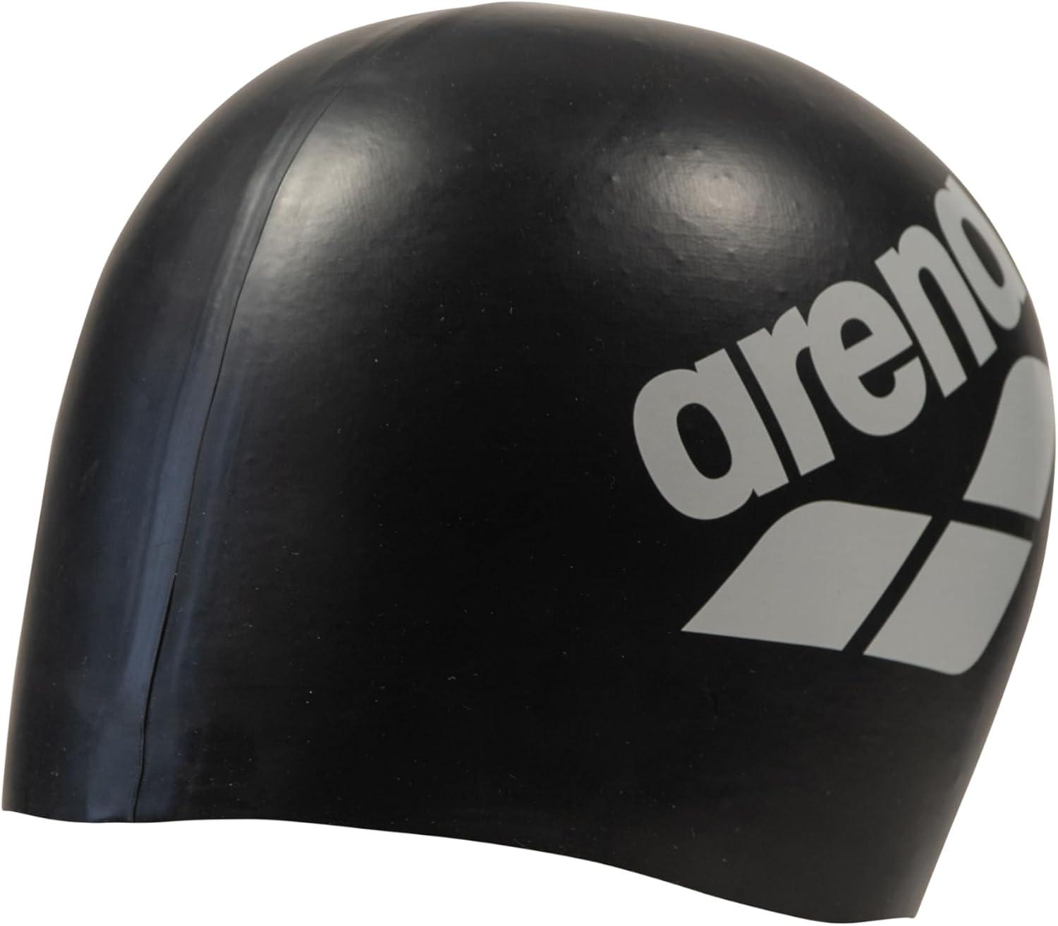 Arena Unisex Big Logo Silicone Swim Cap Women and Men Fitness Swimmers Intensive Training Durable Soft Elastic Bathing Cap(Black/White)