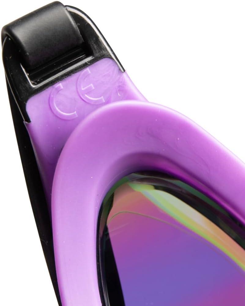 These fogless goggles for adults offer wide vision and maximum comfort at top speed with hard mirror polycarbonate lenses that have a hydrodynamic low-profile to minimize water drag; PVC free