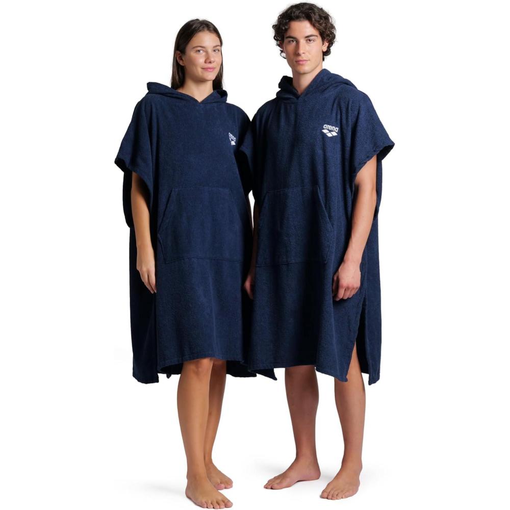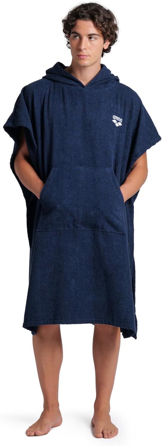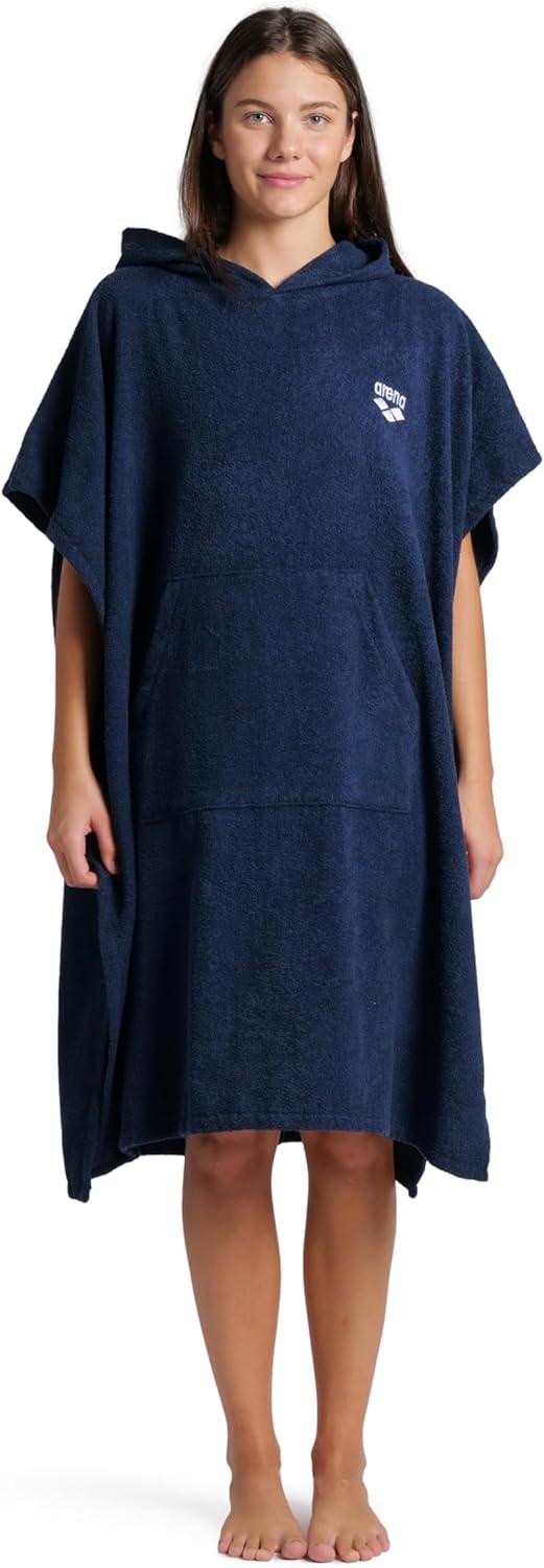 ARENA Unisex Cotton Poncho Soft Hooded Towel with Front Pocket Easy Changing Post Swim Warmth and Comfort for Beach Pool or Surf, Calypso Coral/White, Small/Medium(Navy/White)