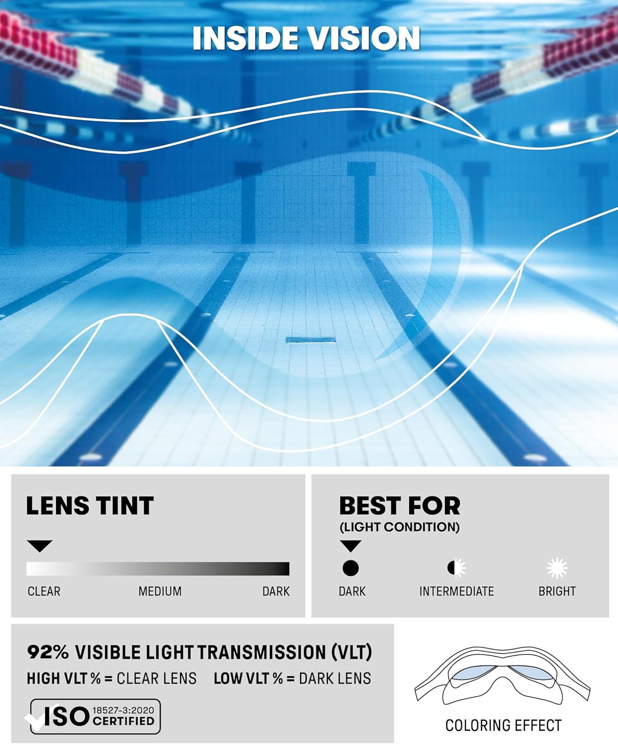 Hypoallergenic silicone seals and large frame deliver maximum safety, while the snug fit prevents any water leakage so your young swimmer can have the best time in the water; PVC free
