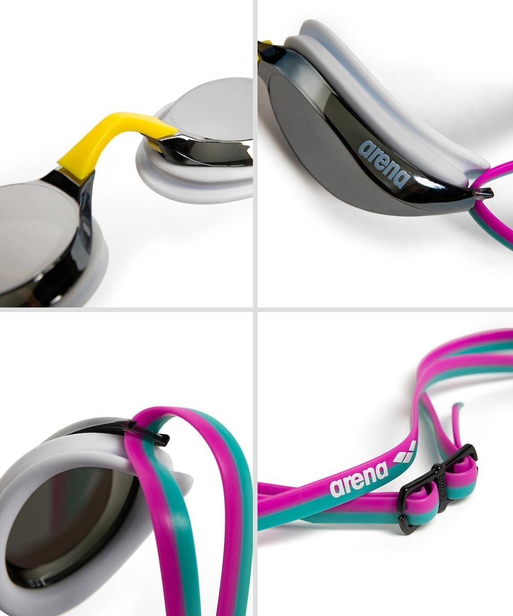 ARENA Unisex Python Racing Swim Goggles for Men and Women Anti-Fog No Leak Max Comfort Dual Strap, Mirror/Non-Mirror Lens(Silver-white-fuchsia)