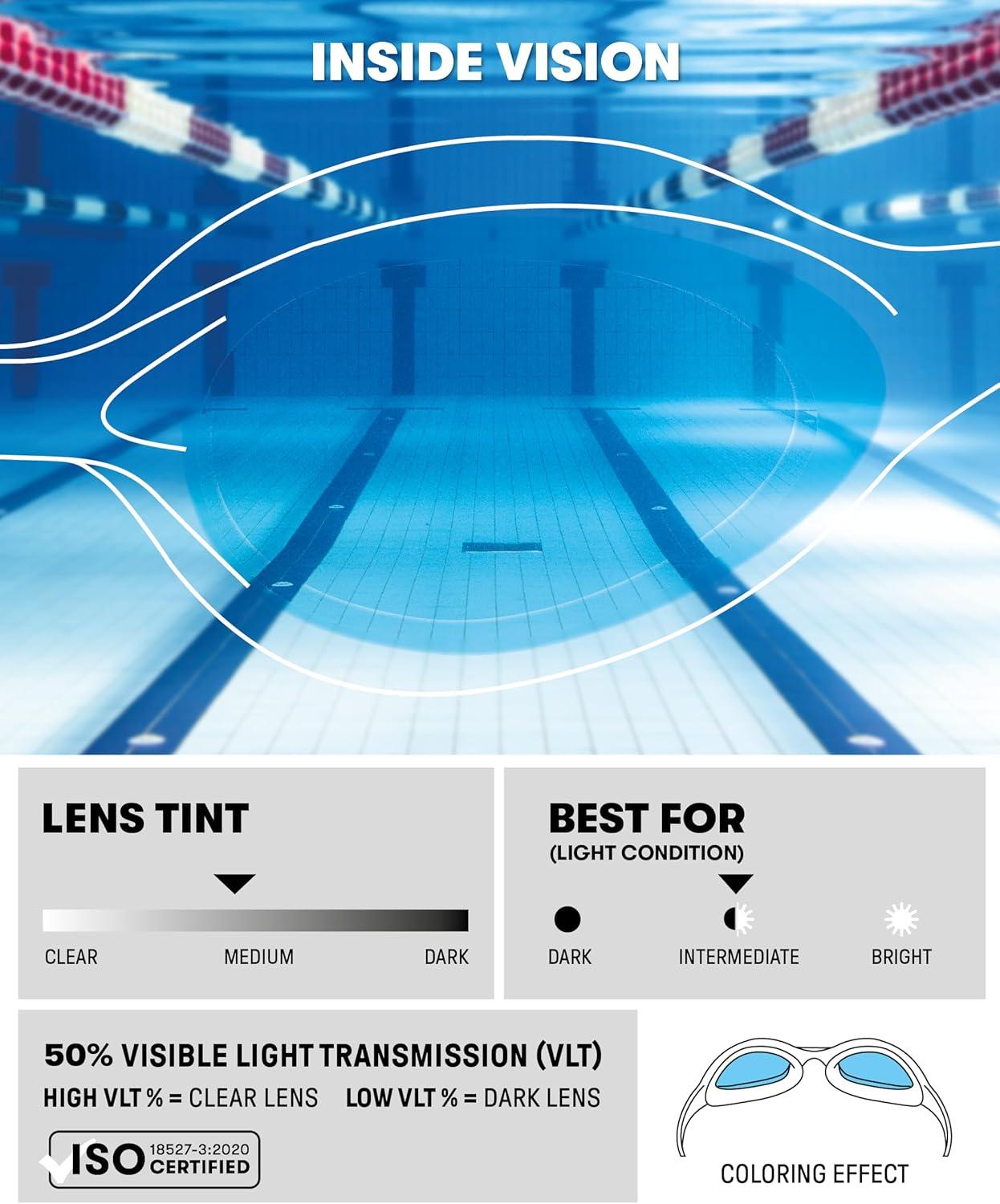 Hydrodynamic design with a smaller profile to fit a smaller face and soft hypoallergenic silicone seals that keep water out and provide maximum comfort making it a great choice for young swimmers