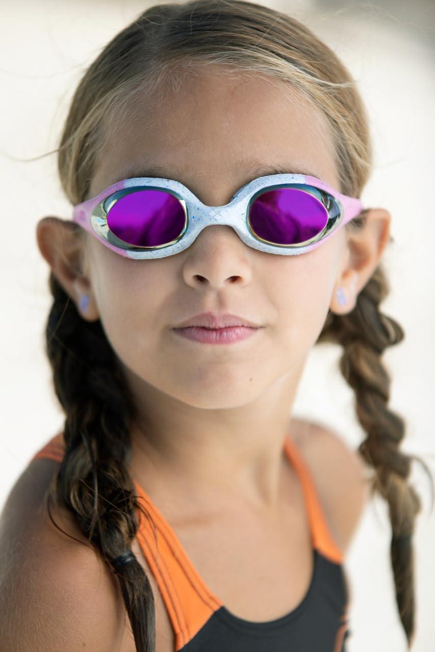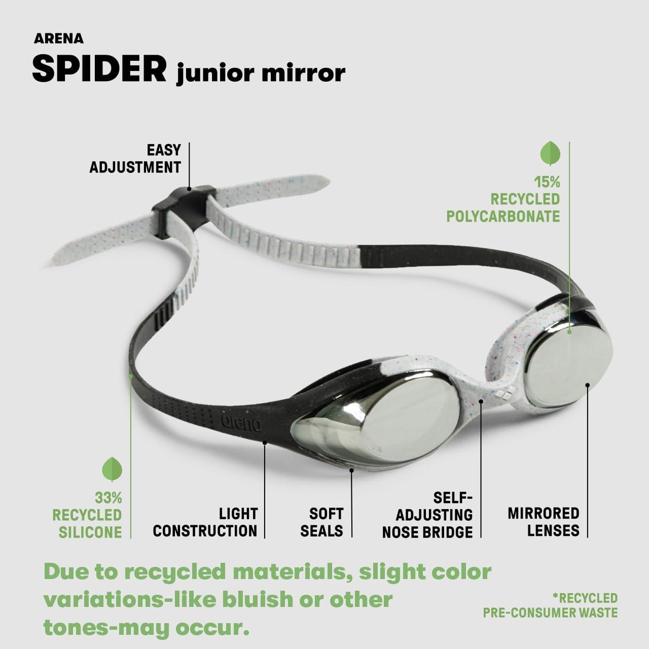 ARENA Unisex Youth Spider Junior Swim Goggles Girls and Boys Ages 6 to 12 Fogless Lenses Easy to Adjust Strap No Leak(Silver/Gray/Black Recycled)