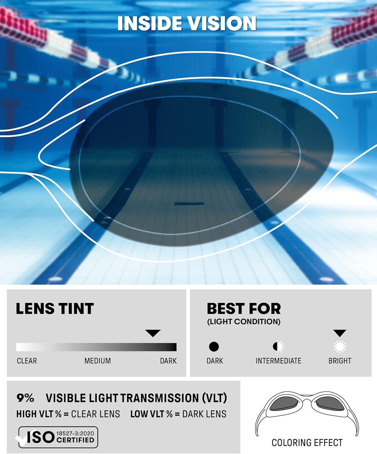 Hydrodynamic design with a smaller profile to fit a smaller face and soft hypoallergenic silicone seals that keep water out and provide maximum comfort making it a great choice for young swimmers