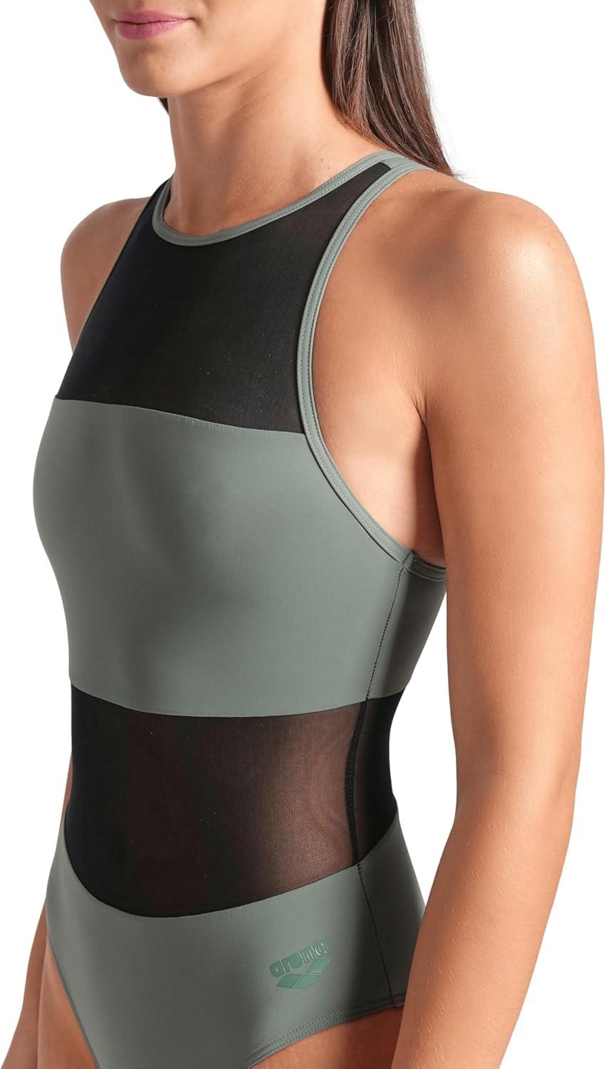 Arena Womens Arena Feel Women’s Mesh Panel Vent Back Stretchy Swimsuit Stylish Ladies Bathing Suit(Sage Green)