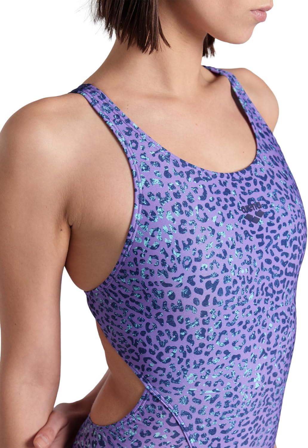 Arena Womens Arena Performance Women’s Animalier Swim Tech Back Swimsuit Sports Pool Bathing Suit(Purple Multi)