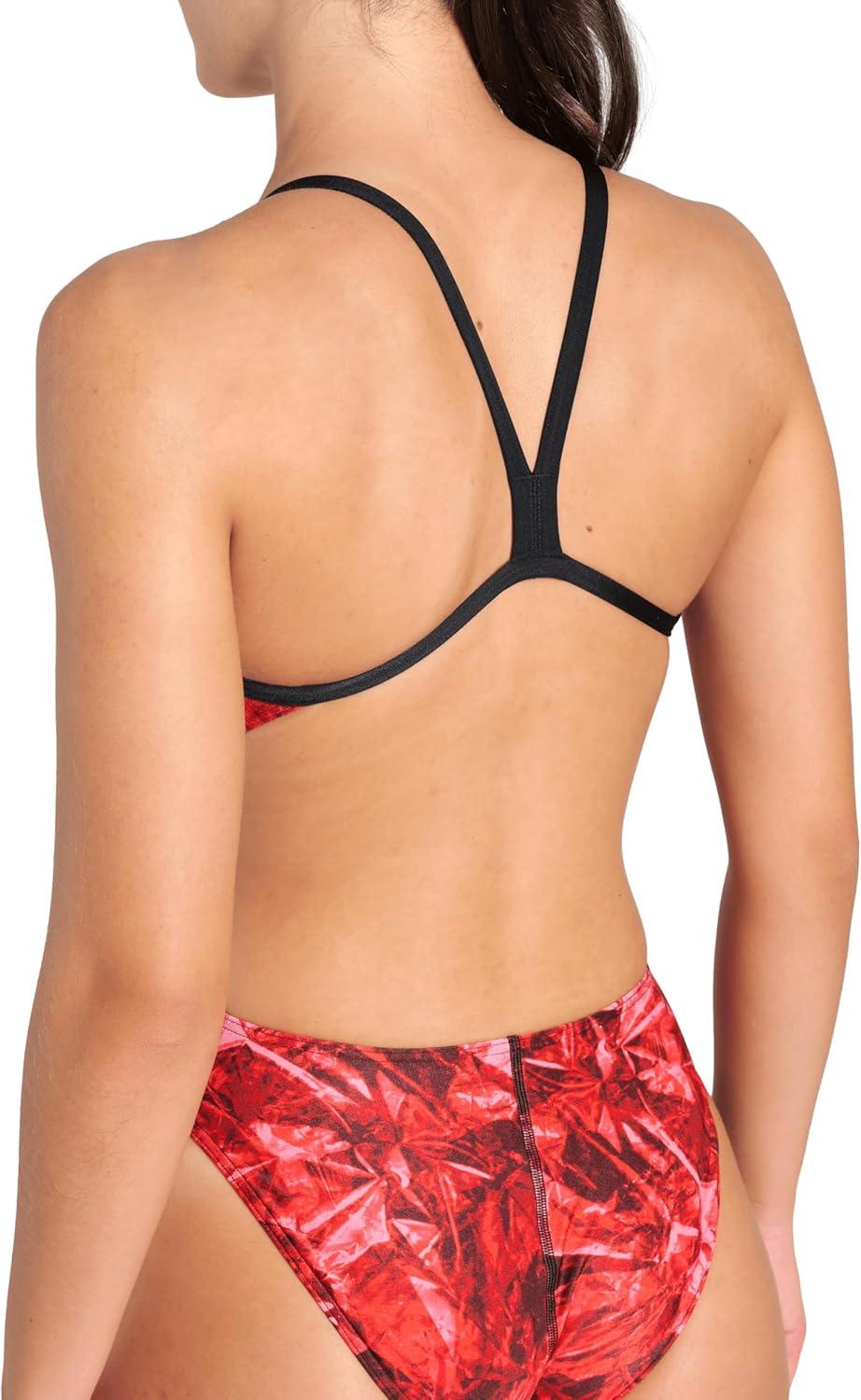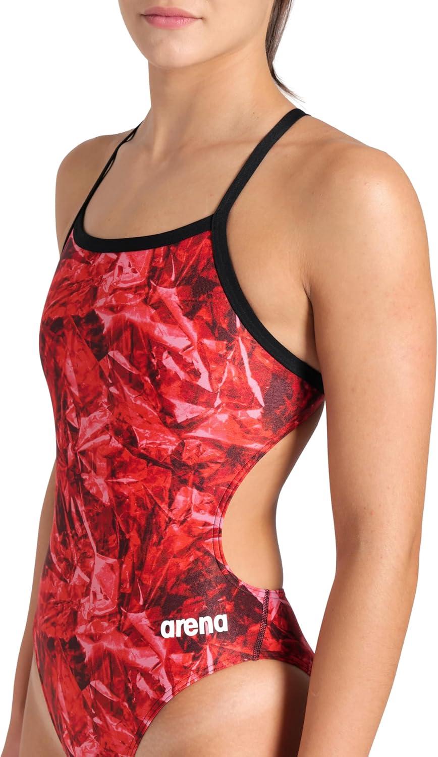 Arena Womens Arena Performance Women’s Crackle Team Print Challenge Back Ladies Training Swimsuit(Black/Team Red)