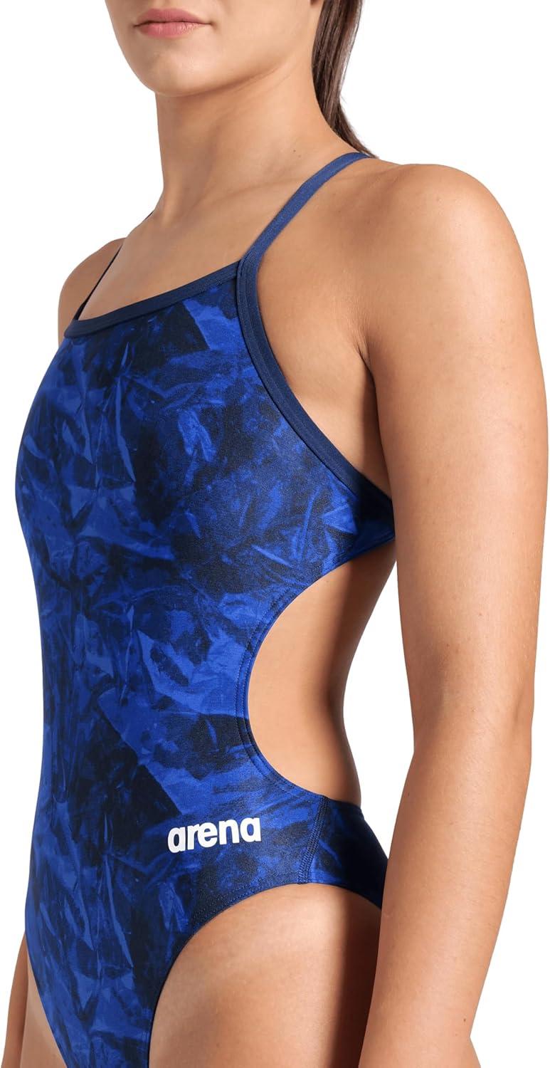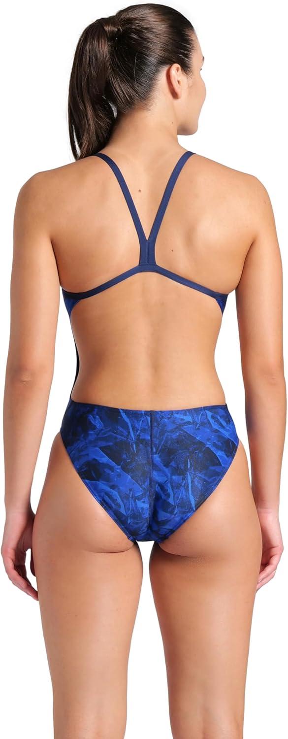 Arena Womens Arena Performance Women’s Crackle Team Print Challenge Back Ladies Training Swimsuit(Navy/Team Navy)
