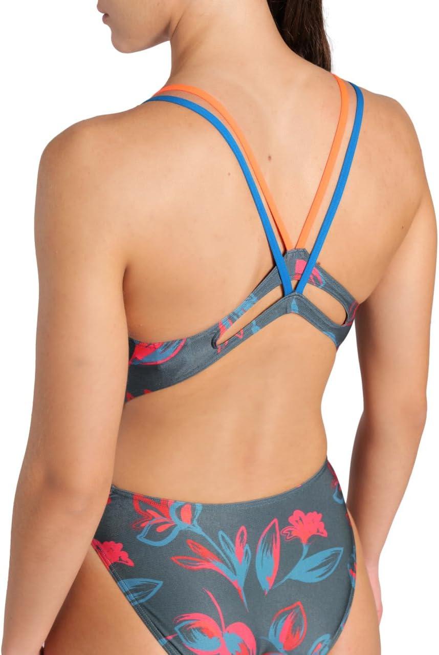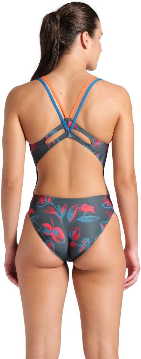 Arena Womens Arena Performance Women’s Floral Lace Back Plus Training Swimsuit Ladies Bathing Suit(Dark Sage Multi/Bright Coral)