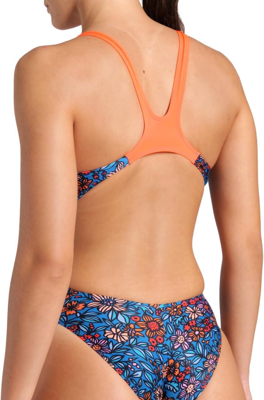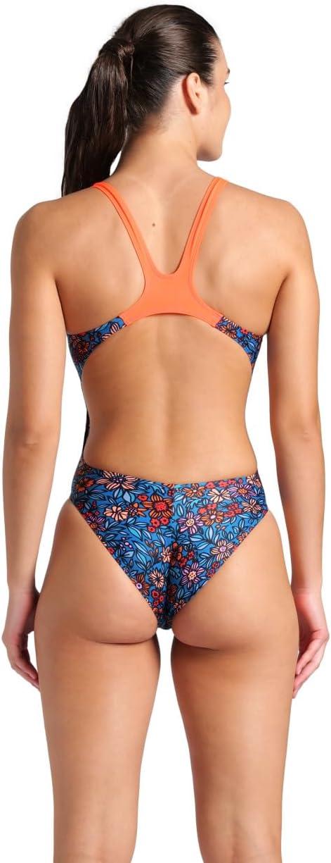 Arena Womens Arena Performance Women’s Micro Floral Swim Tech Back Training Swimsuit Ladies Bathing Suit(Blue Cosmo Multi/Bright Coral)