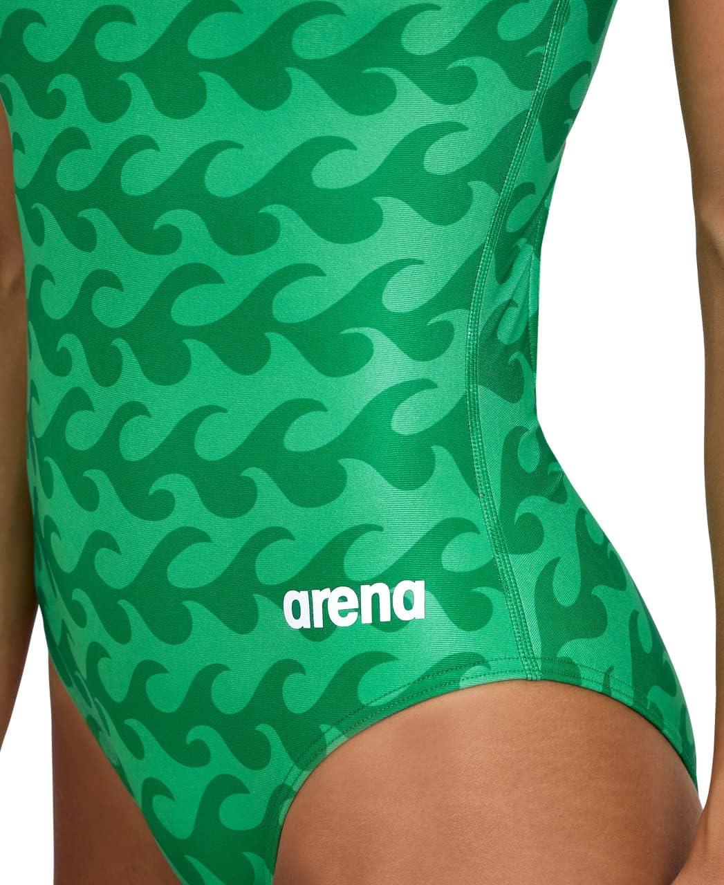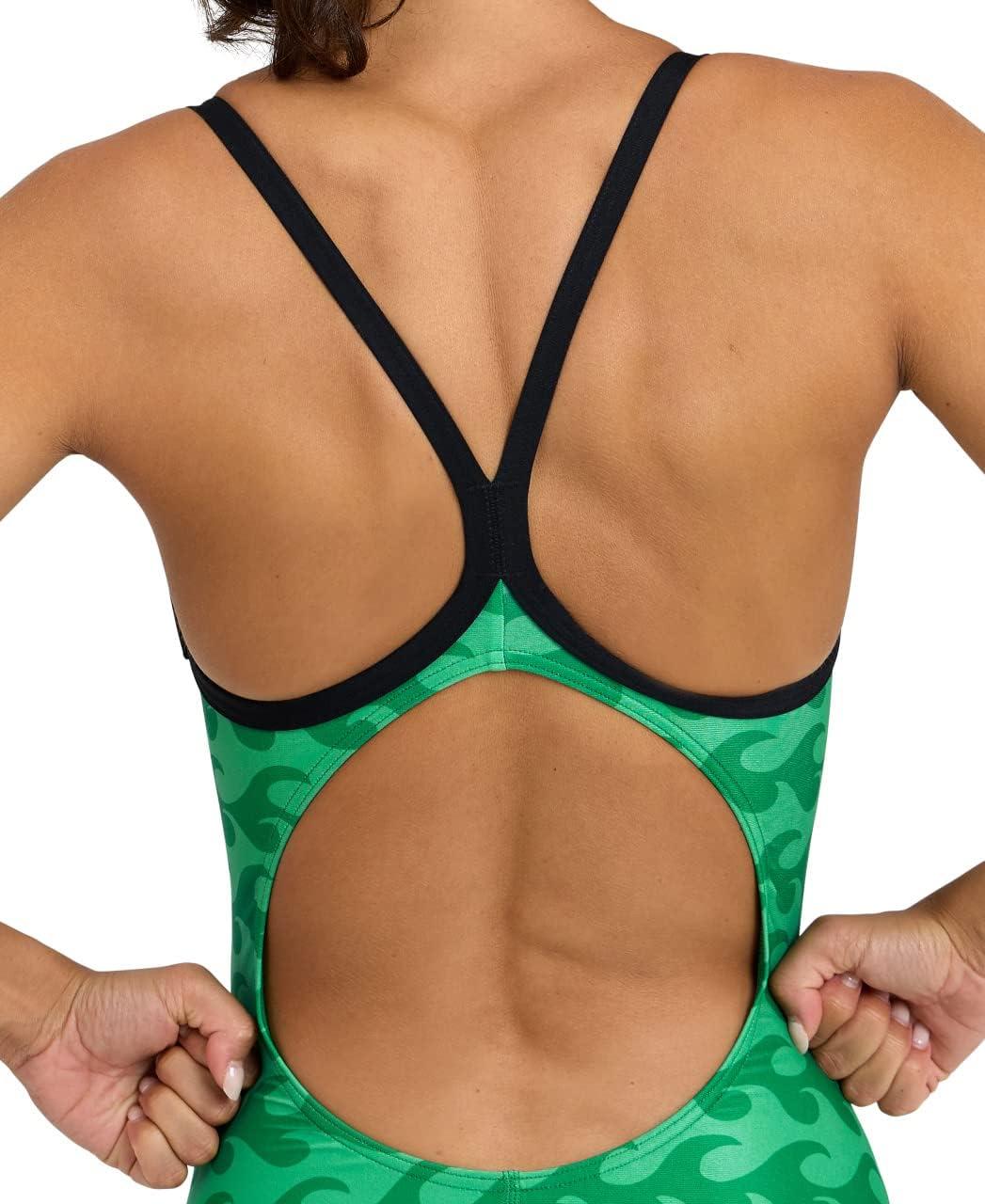 Arena Womens Arena Performance Women’s Ride The Wave Swimsuit(Black-team Green)