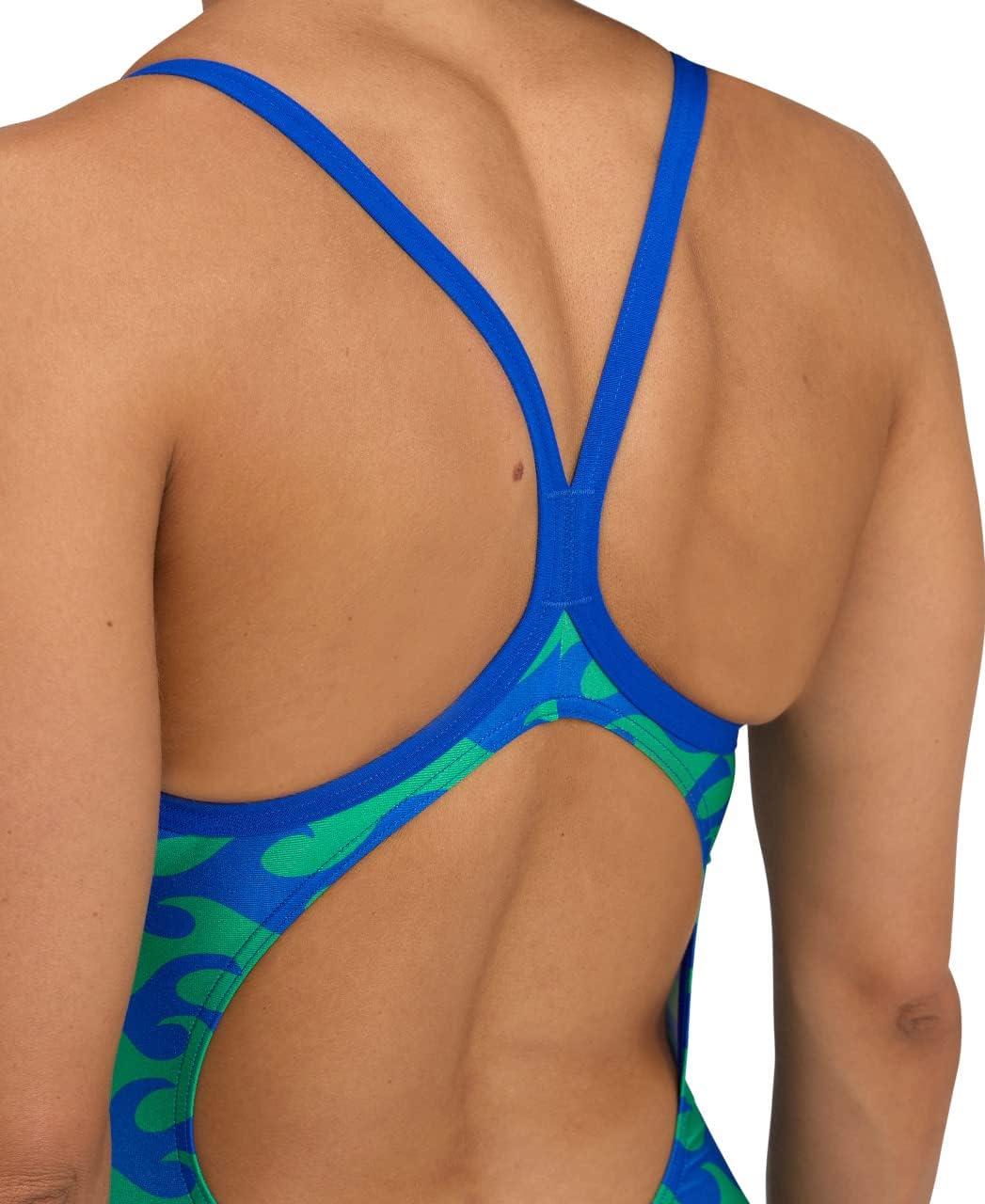 Arena Womens Arena Performance Women’s Ride The Wave Swimsuit(Neon Blue-team Navy Green)