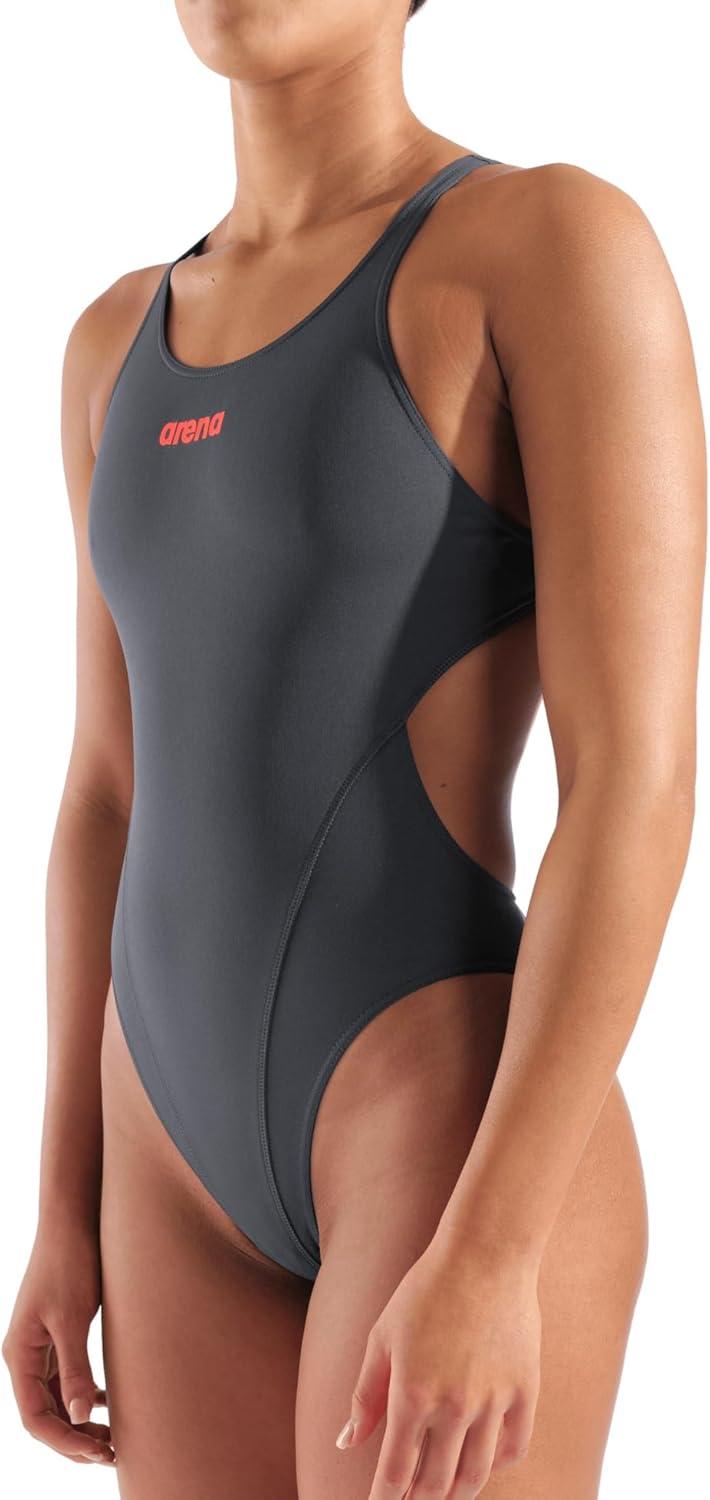 Arena Womens Arena Performance Women’s Solid Team Swim Tech Swimsuit(Asphalt/Bright Coral)
