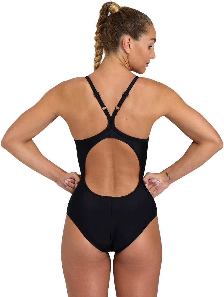Arena Womens Arena Women’s Feel Solid Light Drop Back Swimsuit Ladies Fitness Swimwear(Black)