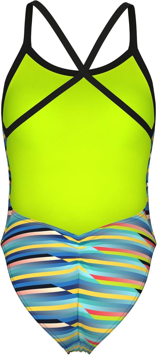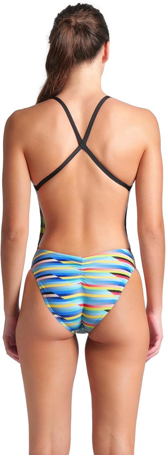 Arena Womens Arena Women’s Performance Racing Stripes X Criss Cross Back One Piece Swimsuit(Black Multi/Black)
