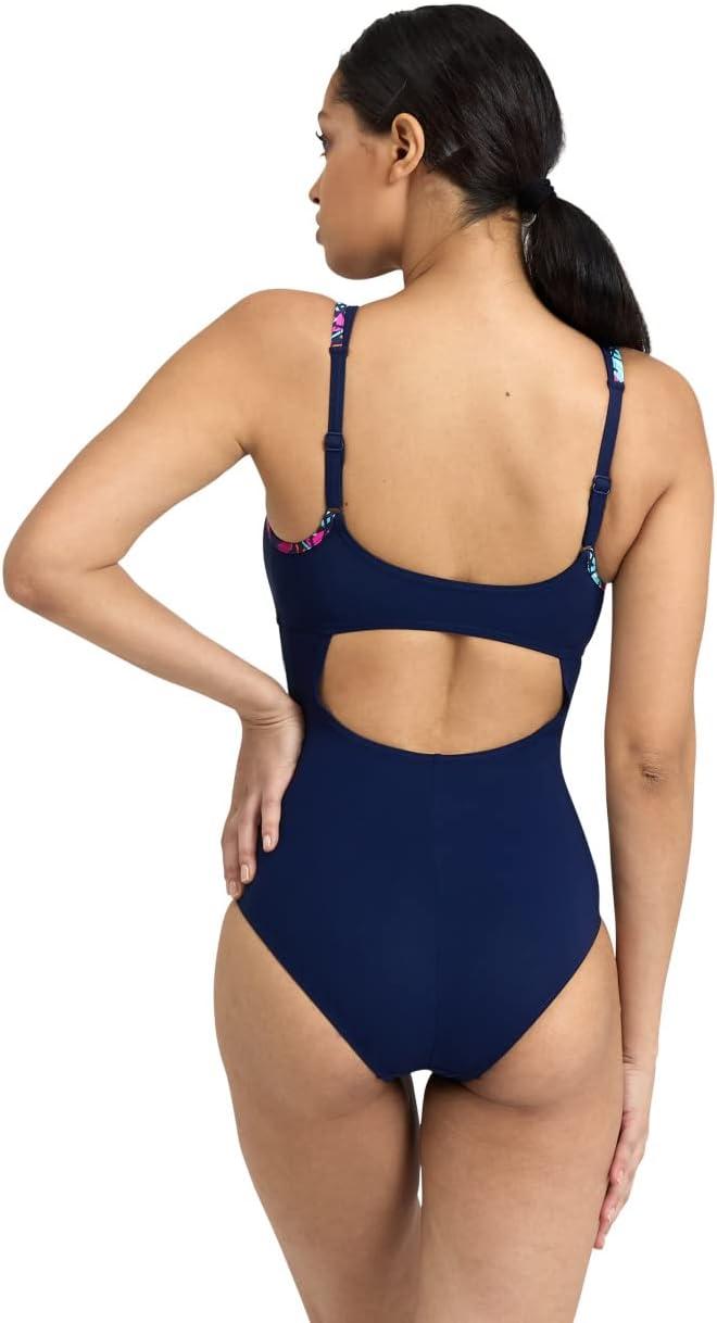 ARENA Womens Bodylift Women’s Francy B-Cup Strap Back Swimsuit(Navy/Freak Rose Multi)