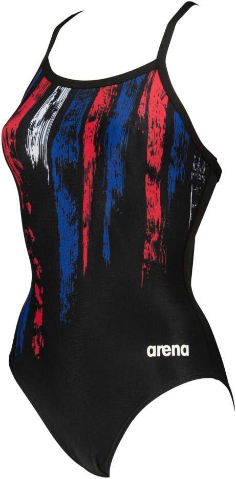 ARENA Women’s Country Flags Light Drop Back One Piece Swim Suit(Black-multi White)