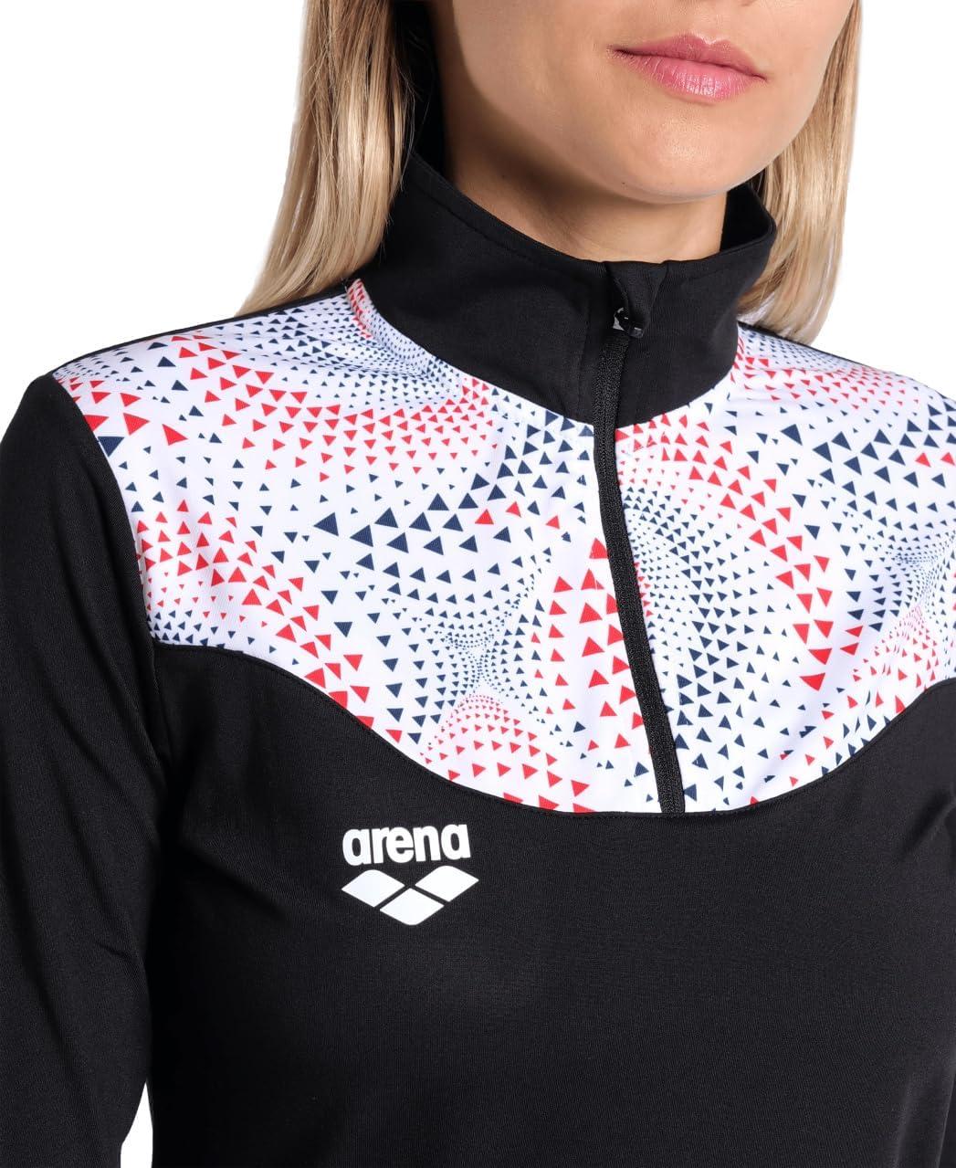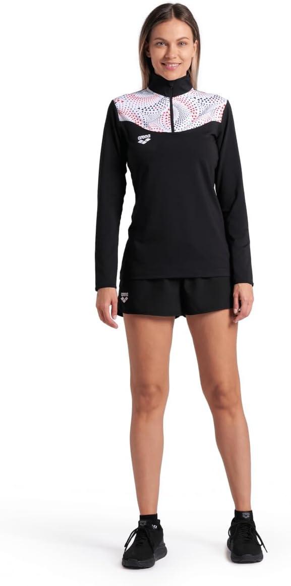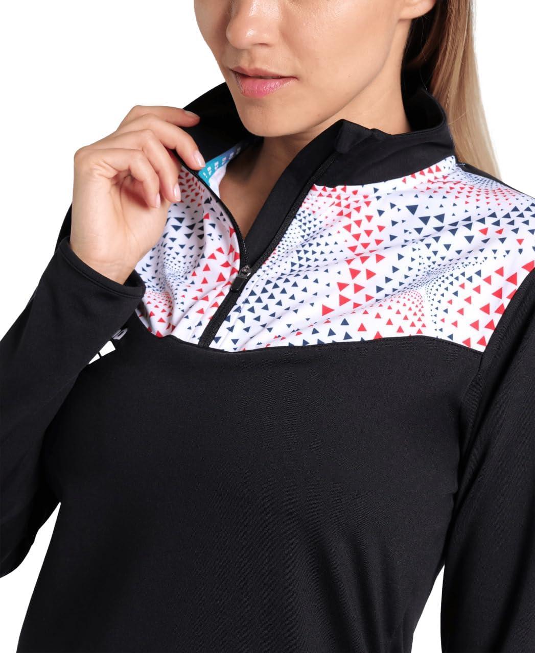ARENA Women’s Fireflow Half Zipped Long Sleeve Shirt Official Team Merchandise(Black/White)