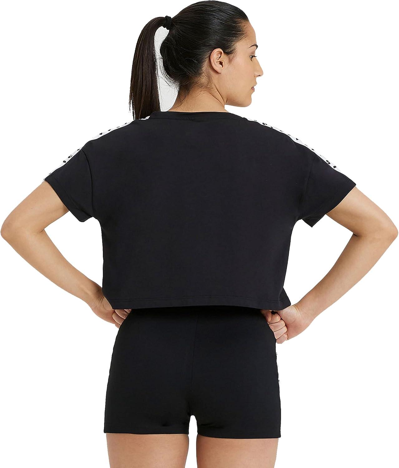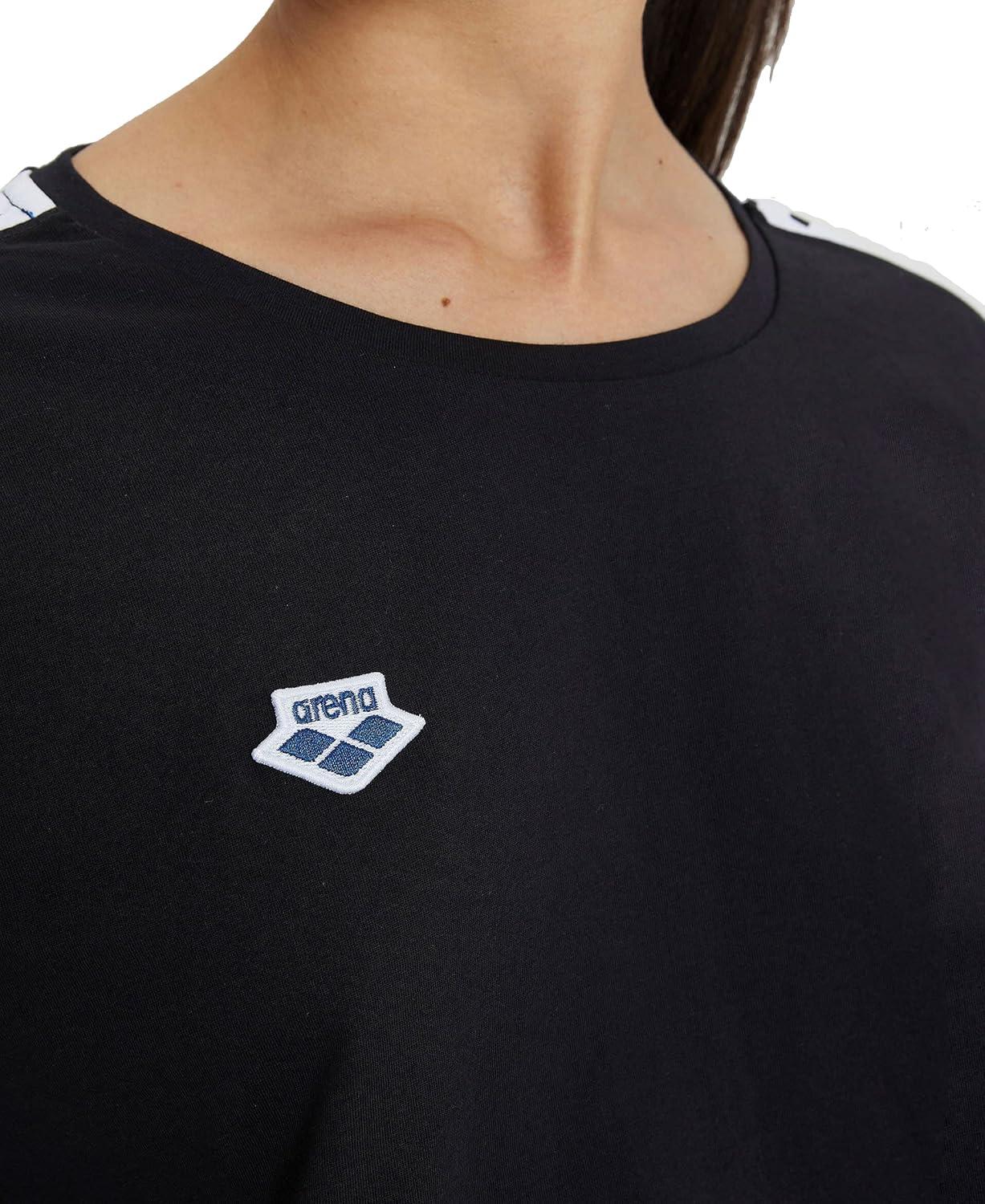 ARENA Women’s Icons Corinne Team Crop T-Shirt Short Sleeve Loose Fit Cotton Active Top Cozy Crew Neck Workout Tee(Black)