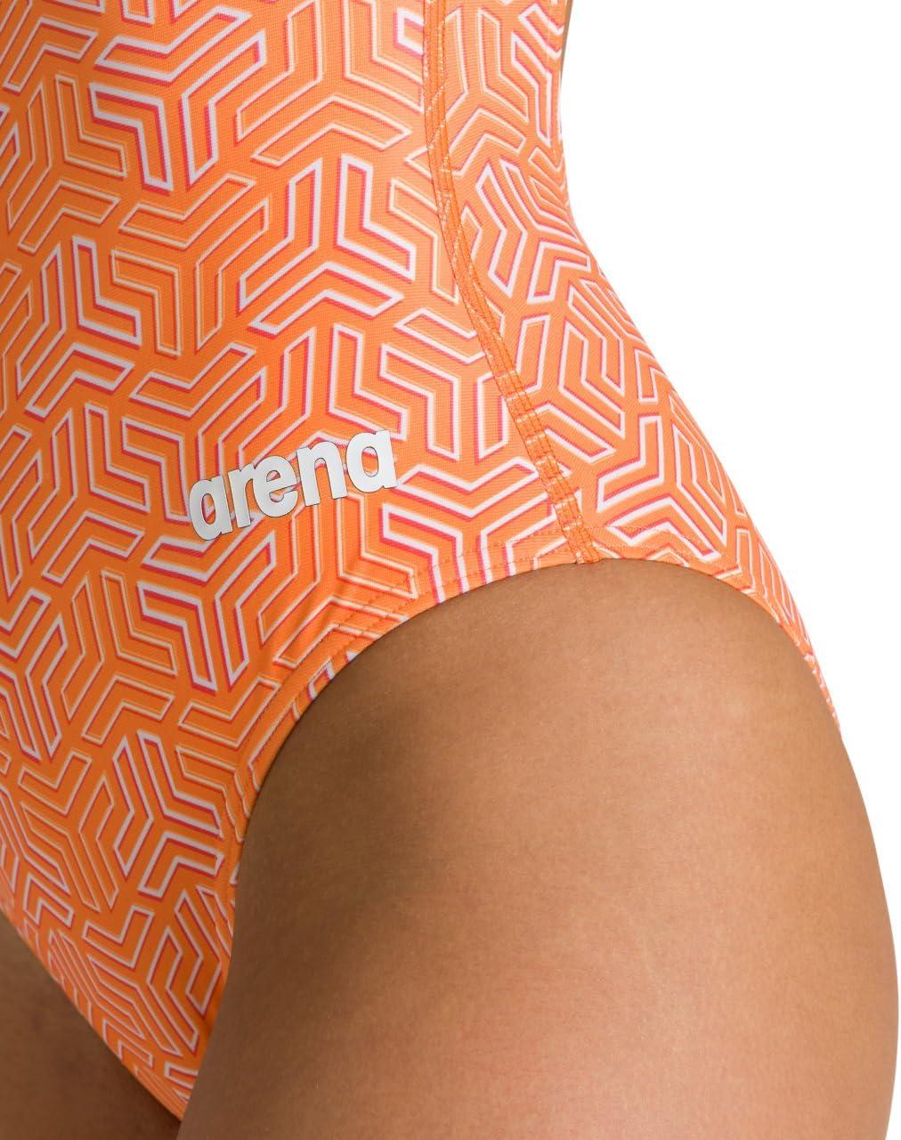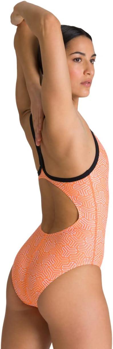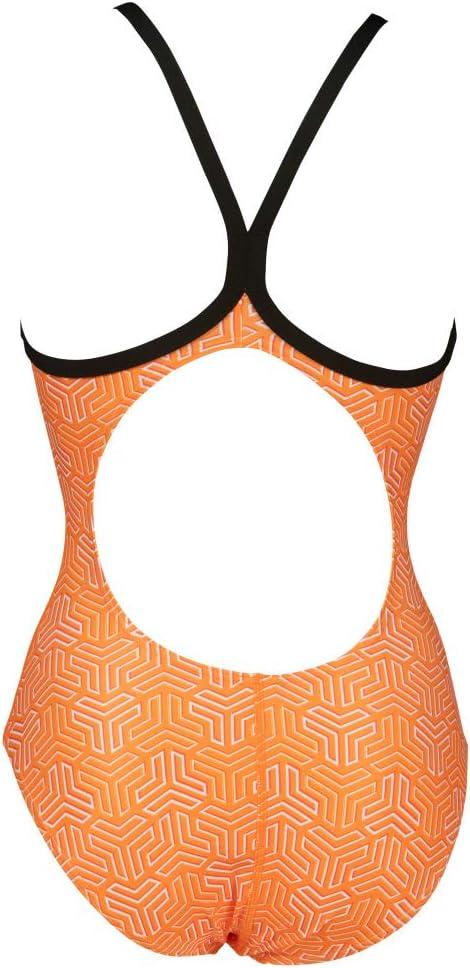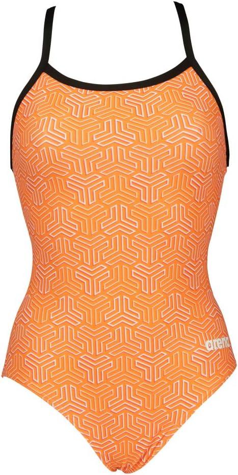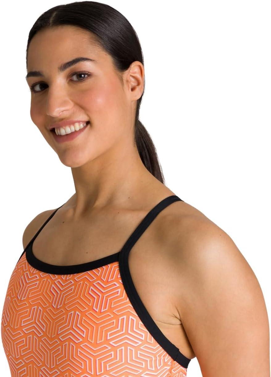ARENA Women’s Kikko Light Drop Back One Piece – Chlorine Resistant, UV Protection, Supportive Thin Straps Swimsuit(Black-multi Orange)