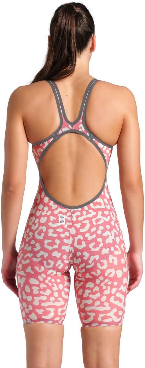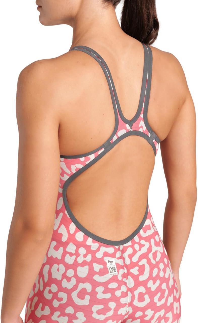 Arena Womens Open-Back Powerskin Carbon Air2 Kneeskin Racing Suit(Leopard Skin Geranium)