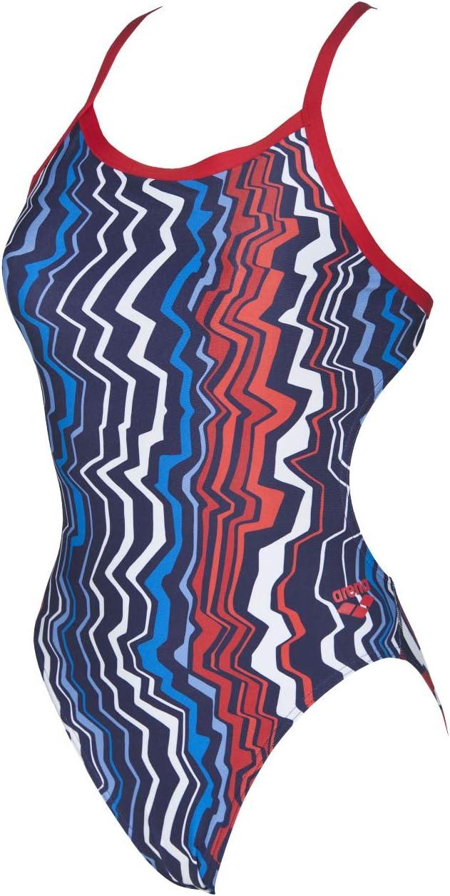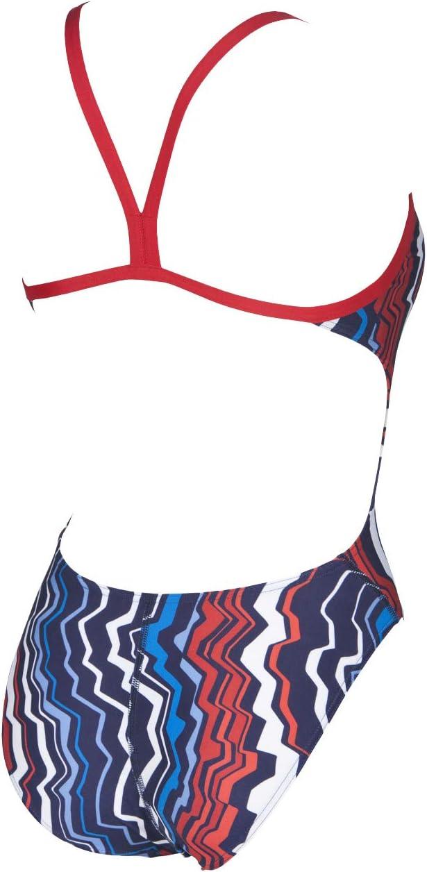 ARENA Women’s Palm Forest Challenge Back One Piece Fl(Zig Zag Navy/Red)