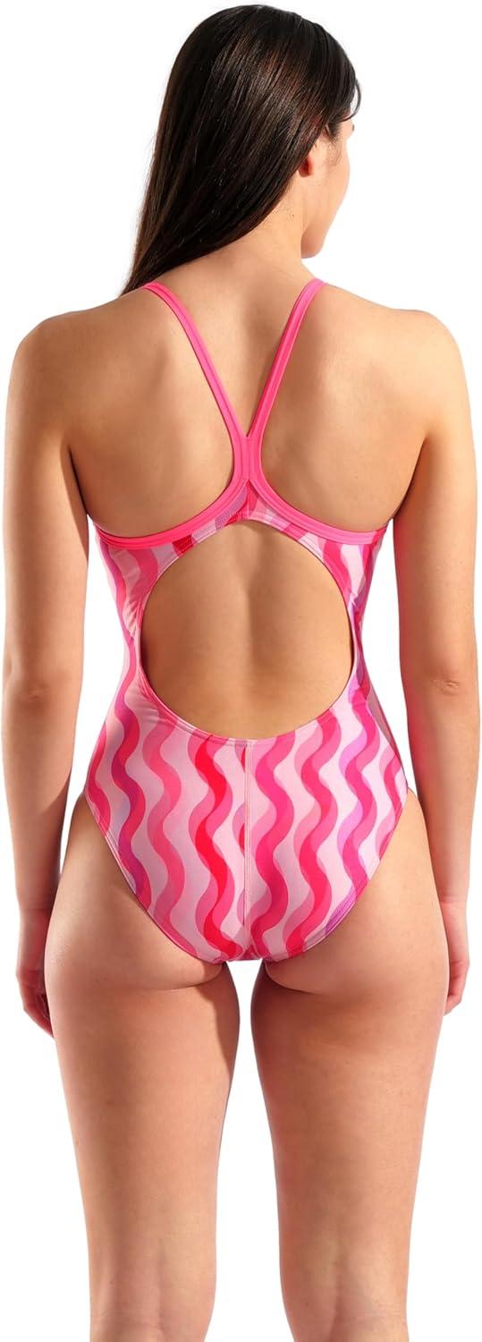 Arena Women’s Performance Breast Cancer Collection Ripple Light Drop Back Swimsuit(Multi Pink/Shocking Pink)
